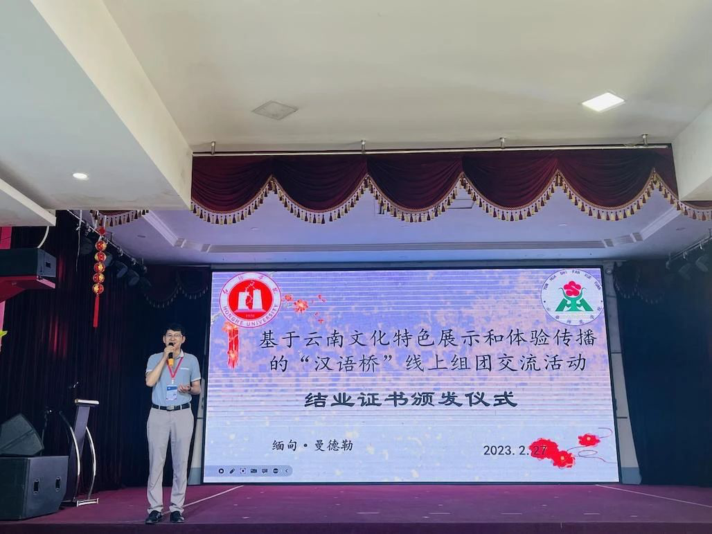 接着,学院师范部主任丁浩老师主持了在中国驻曼德勒总领事馆·云华师范学院2023年“携手前行聚焦未来”迎春游园活动中表现优异的优秀工作者颁奖仪式。共有孙楠、蒋天幸等22位老师获奖。