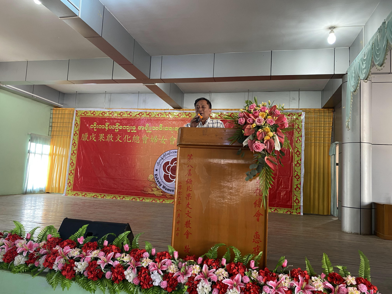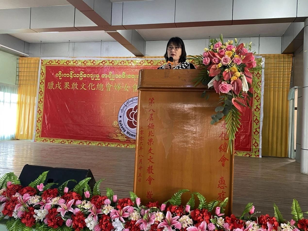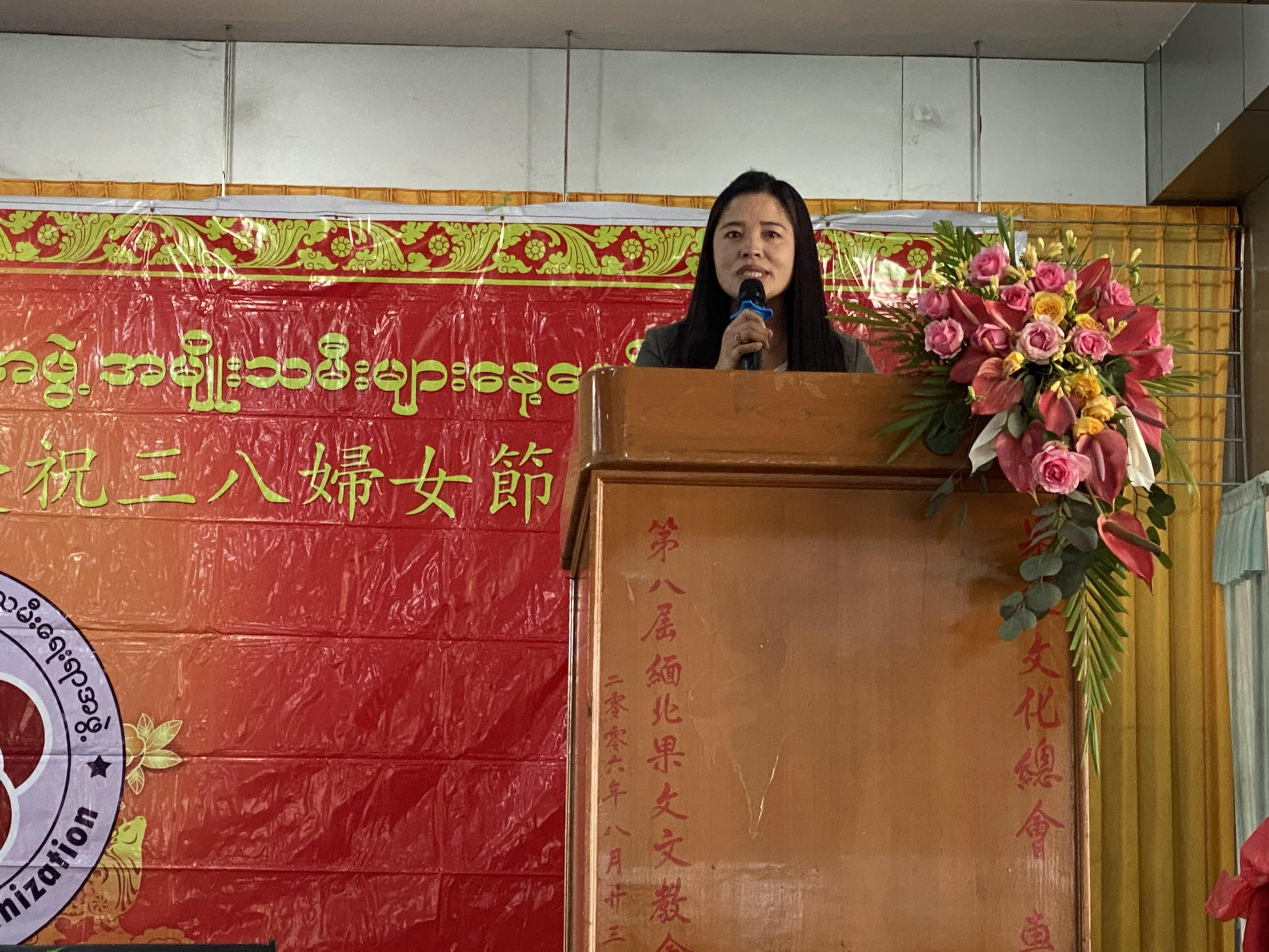 果敢民族妇女会吴春焕主席致辞时说;今天是我们果敢民族妇女会一年一度欢庆国际三八妇女节的大好吉日,三年来因为疫情妇女会没有举办庆会活动,现在疫情的阴霾已经散去,美好的日子已经到来,今天大家有幸欢聚一堂,共襄盛举,在此我谨代表果敢民族妇女会,对大家的到来表示热烈的欢迎,对各位领导的支持及妇女姐妹们的团结合作、辛劳的付出表示衷心的感谢!也非常感谢果邦学校赖志贤校长、老师们对举办今日庆会活动的大力支持和帮助!