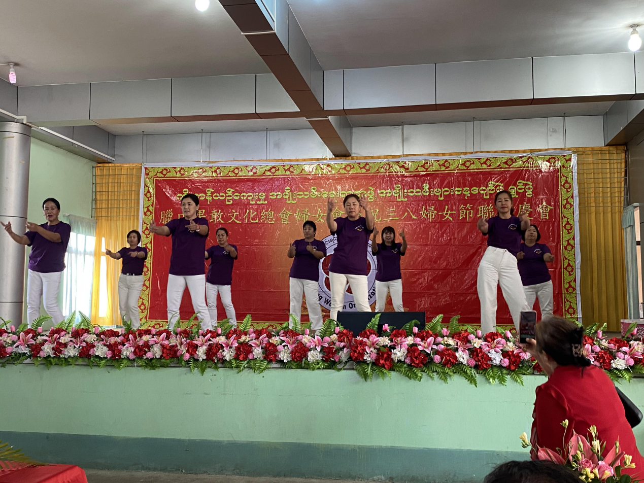 鲜花送给最美丽的妇女姐妹:腊戌果敢民族文化总会妇女会举办三八妇女节联欢庆会