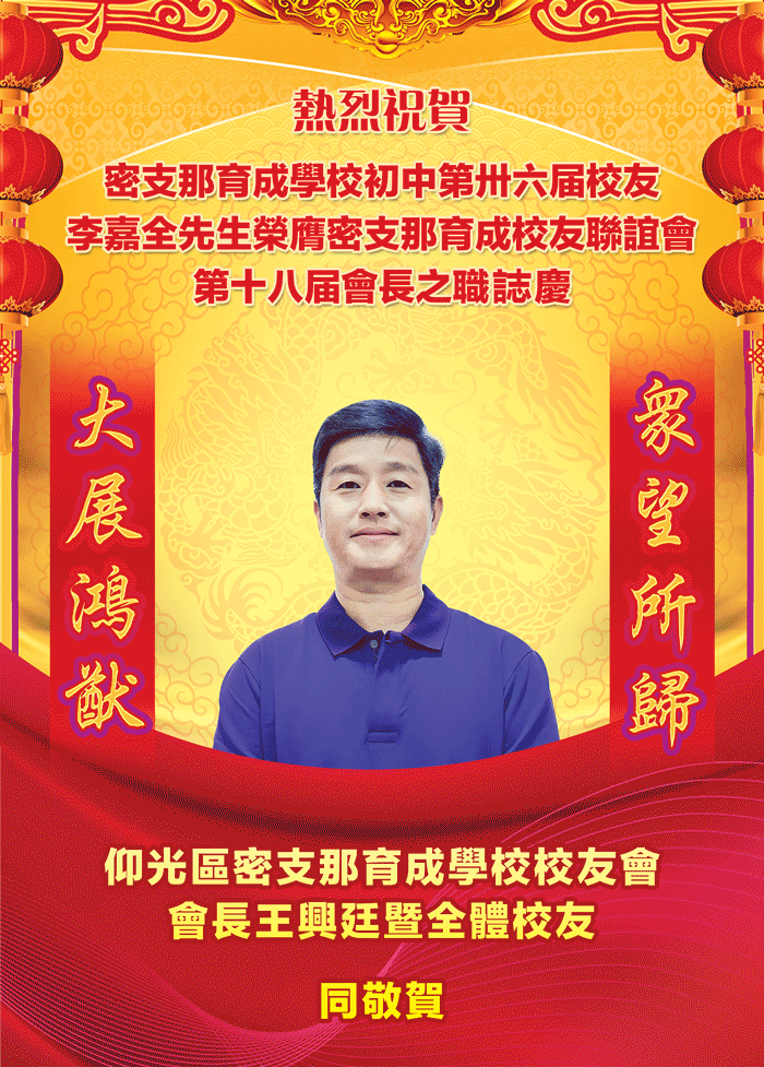 仰光区密支那育成学校校友会祝贺李嘉全校友荣膺密支那育成校友联谊会会长