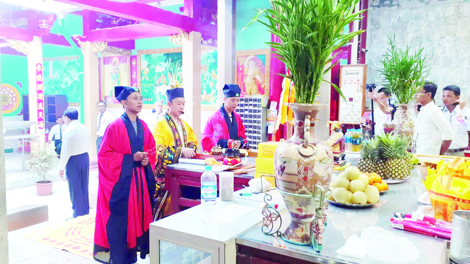 4月9日上午8时,司仪陈锡志宣布落成典礼开始,首先由陈大坤代表赖城荣董事长致辞。此后举行了隆重的重修落成典礼及开光法会,当地的华人华裔群众为此都非常激动和欣喜。随后由仰光清圣堂喜持富为首的三位道士为妈祖神像进行开光,并诵经祈福。整个典礼在风和日丽、天朗气清的好天气下进行,更加凸显出典礼的庄重和隆重。
