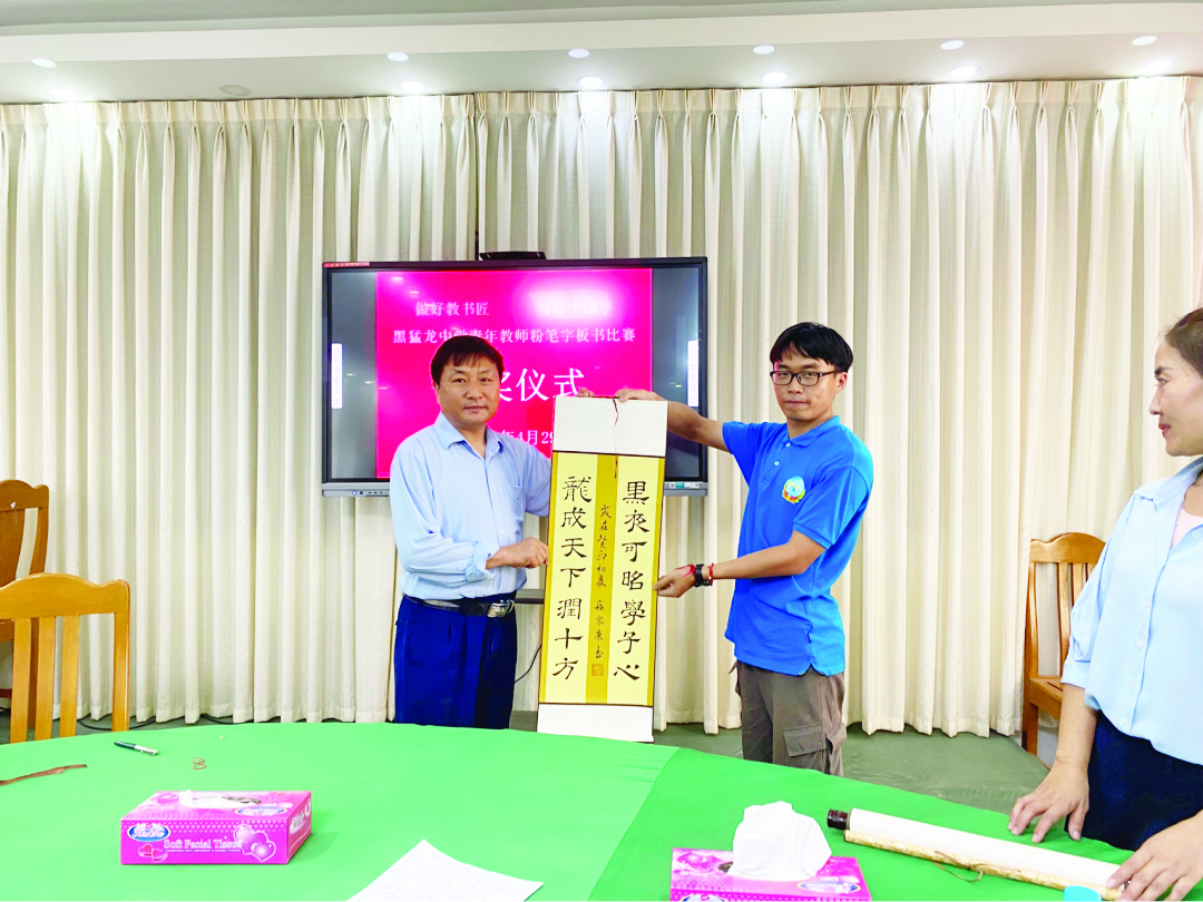 腊戌黑猛龙中学举办青年教师粉笔字板书比赛