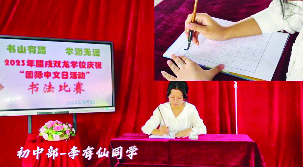 【本报讯】2023年第十四届“国际中文日”围绕着“中文•增进文明对话”的主题在全球拉开了帷幕。在缅北果文文教会会议精神传达后,腊戌双龙学校迅速成立了活动小组,以张湘武校长为核心,明兴灵老师、姜吉莲老师为专责,杨茂方副校长、杨翠芳老师、李太懿老师等指导活动事宜。