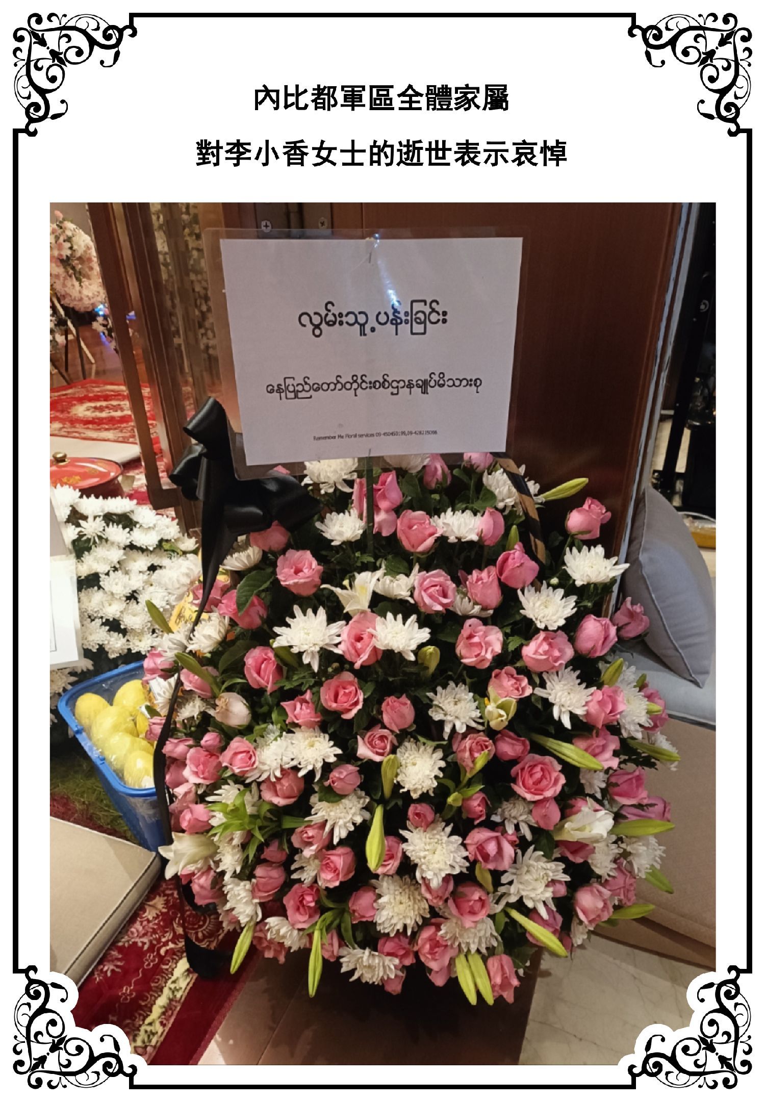 内比都军区全体家属对李小香女士逝世表示哀悼!