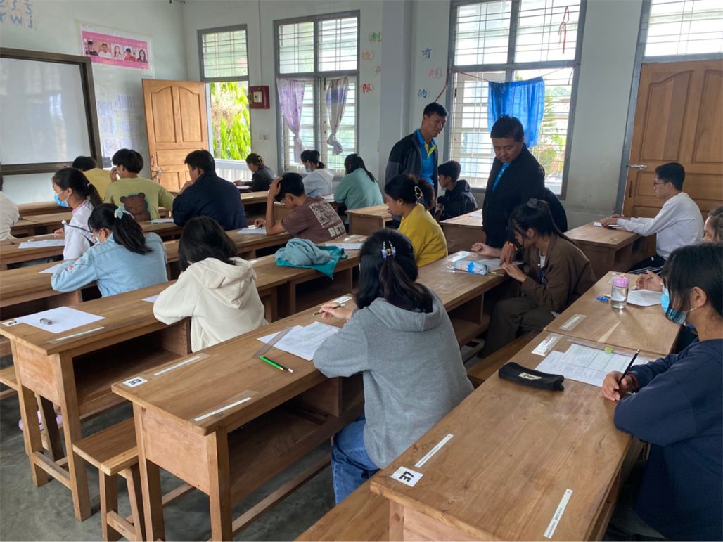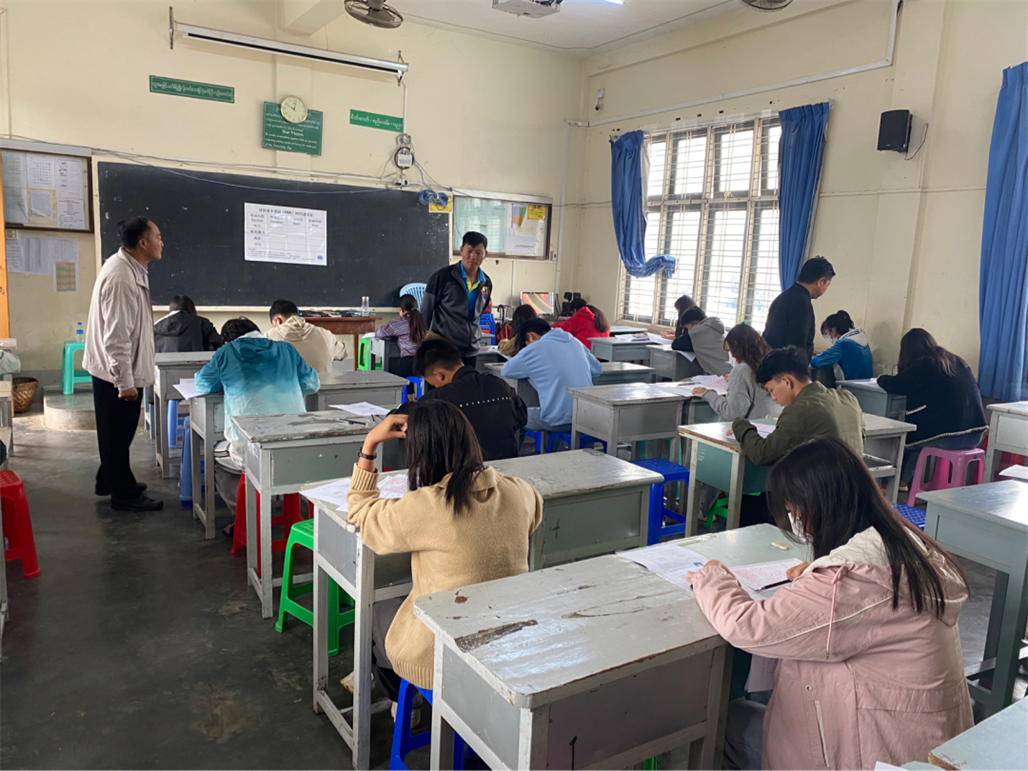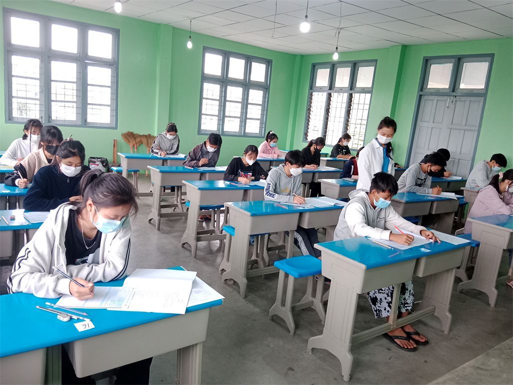 中文水平系列考试是为母语非中文者设立的一项国际中文能力标准化考试,为中文学习者提供科学有效的中文水平证明,中国国家汉办(中外语言交流合作中心)于5月14日举行缅甸缅北地区中文水平系列考试“HSK考试(笔试、口试)”线下纸笔考试。本次“HSK考试(笔试、口试)”线下纸笔考试主考场设于曼德勒福庆孔子课堂,缅北腊戍果文文教会作为分考场之一,分别在腊戌果文中学、腊戌黑猛龙中学设分考点,组织会属学校参与并完成了考试作业。