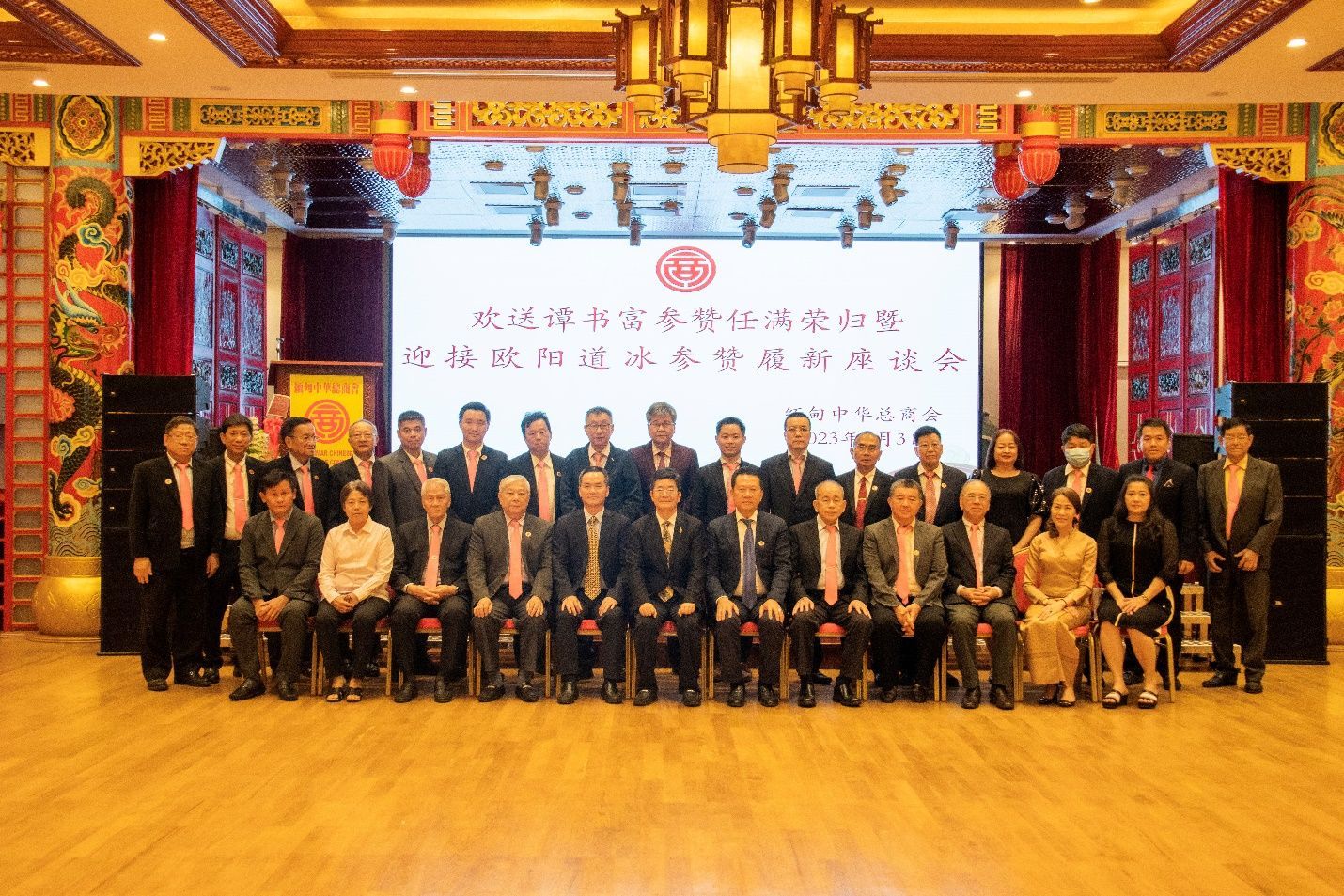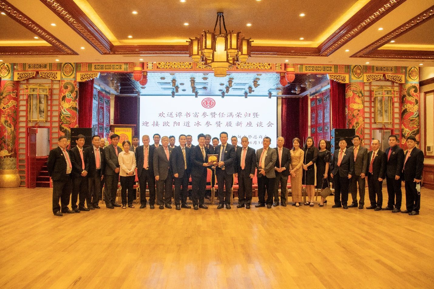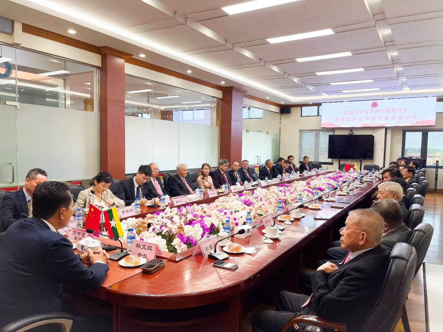 缅甸中华总商会欢送谭书富参赞任满荣归 欢迎欧阳道冰参赞抵缅履新