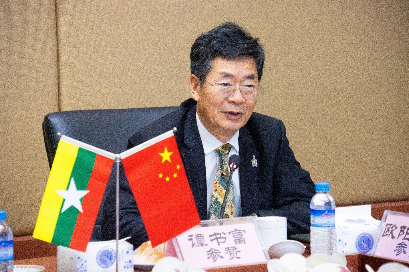 林文猛会长表示,祝贺谭书富参赞任满荣归,在新的岗位继续为国家为人民服务贡献力量。同时也向欧阳参赞表示最诚挚的欢迎和祝福。期待欧阳参赞,经商处与缅甸中华总商会密切合作,克服一切困难为缅中经贸文化合作做出更多贡献。