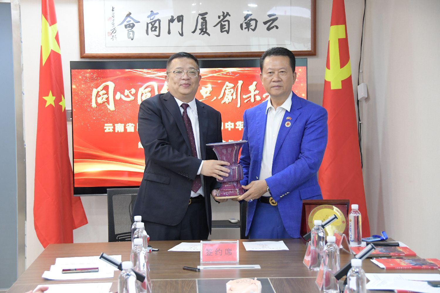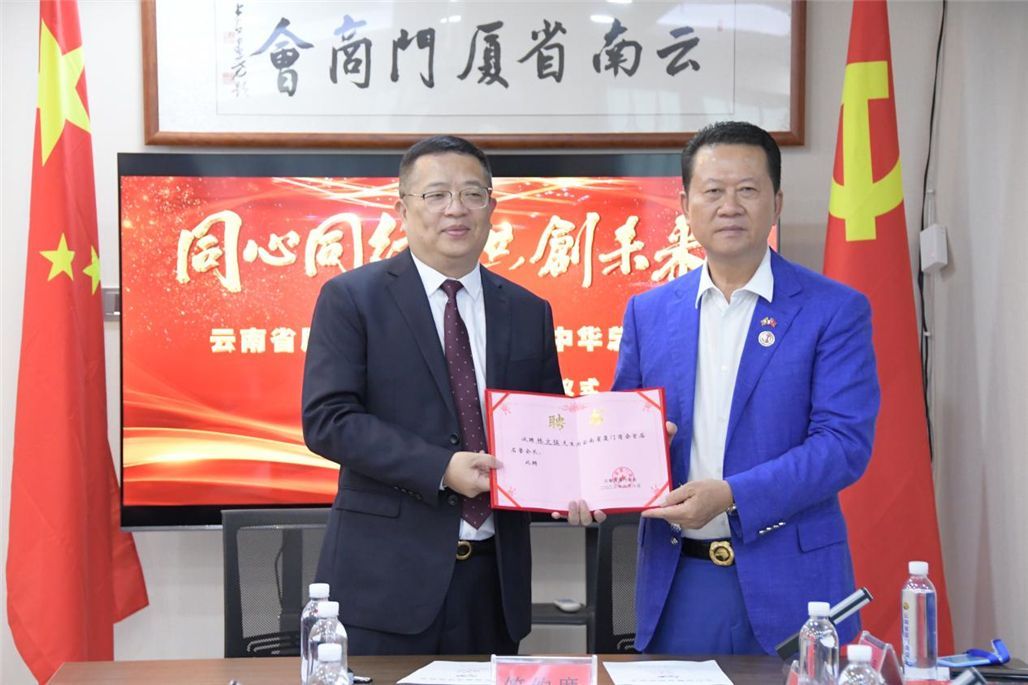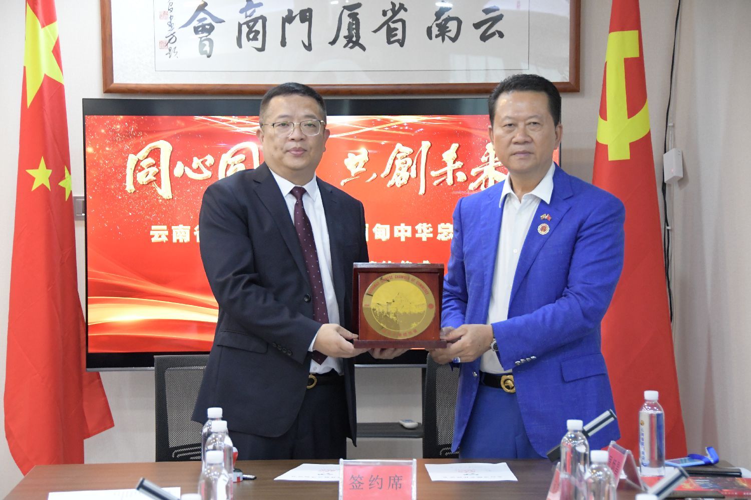 【缅甸金凤凰讯】同心同行,共创未来。值此侨连五洲·七彩云南—第19届东盟华商会在云南昆明隆重举行之际,6月8日下午,缅甸中华总商会林文猛会长一行前往云南省厦门商会交流学习,双方达成共识,签订友好战略合作协议,云南省厦门商会庄哲阳会长并向林文猛会长颁发首届名誉会长聘书。