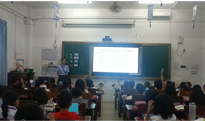 语文组的老师们选材丰富,无论是充满童趣的《荷叶圆圆》,还是富有哲理的《蜘蛛开店》,亦或是享受快乐时光的《肥皂泡》,都抓住了学生的眼球。浇花浇根,育人育心。老师们根据课文,设计了新颖的教学授课方式,在课堂中创设了多种情景,结合现代化多媒体辅助教学,使学生进一步理解课文,激发学生的学习兴趣。在上课时,老师们教态自然,声情并茂,指令明确,课堂纪律与氛围良好,体现出新教师对于课堂的把控能力,可见他们成长的速度之快。语文课离不开朗读,语文组的古爱美老师采用多种方式训练学生朗读,孩子们读得整齐划一,老师也表扬得多种多样,让我们看到了一节师生互动良好,朝气蓬勃的语文课。