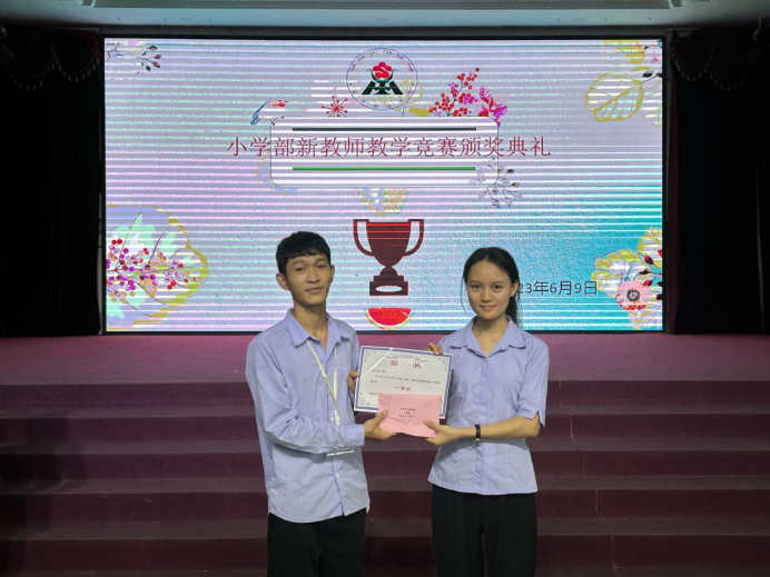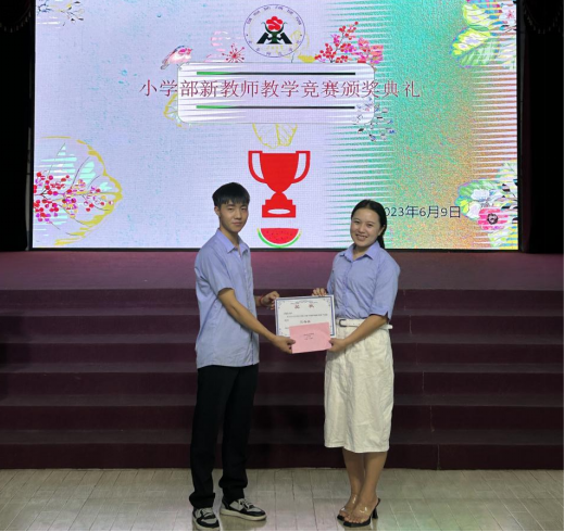 四、表彰优秀教师2023年6月10日,小学部在四楼礼堂举行“新教师颁奖典礼”。在董事会的大力支持下,此次参与竞赛获奖的教师也得到了奖金。新教师教学竞赛在进步与收获、汗水与掌声中结束,由衷地祝贺在本次教学竞赛中荣获佳绩的青年教师们。