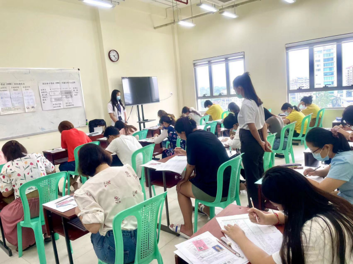 经过两年的等待,仰光终于迎来了考生期盼已久的汉语水平考试(简称HSK考试)。2023年6月11日,东方语言与商业中心孔子课堂在东方学校顺利举行疫情后的首次线下汉语水平考试。本次考试包括HSK二级、三级、四级、五级,HSKK初级、中级与高级,共220名考生参加。因刚刚恢复线下考试,为保证考试服务质量,本次考试限定了报考人数,考生报名非常踊跃,短短两天之内报考人数就报满了。