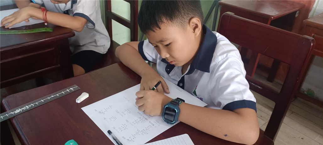 铃声响起,孩子们全神贯注、争分夺秒、奋笔疾书,将平时训练的速算技巧用于实际,表现出高超的速算能力。