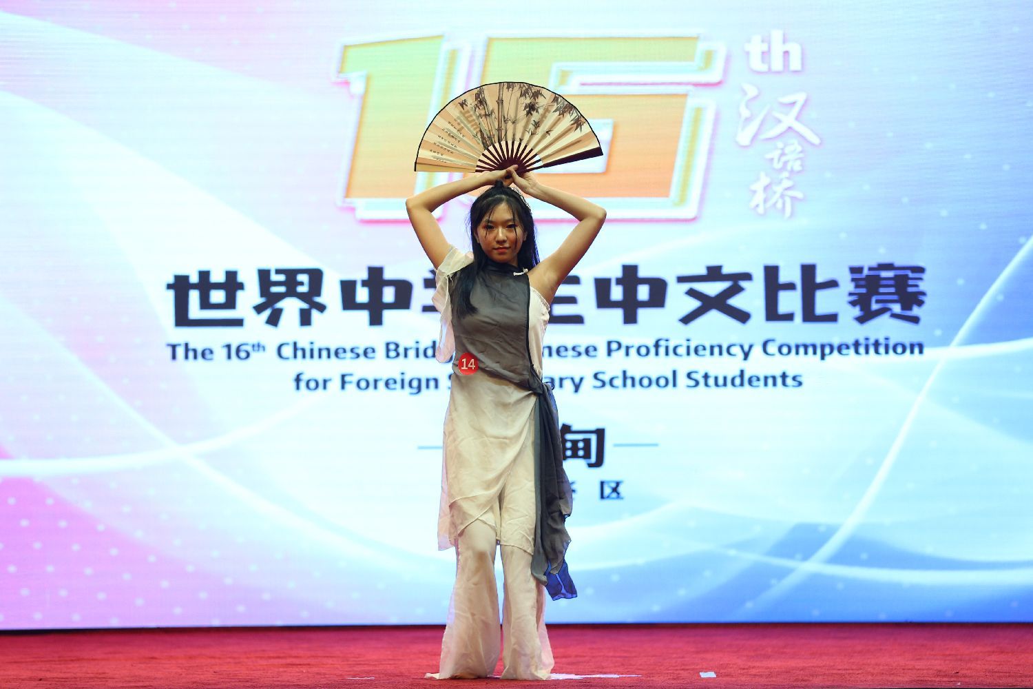 据了解,本届“汉语桥”世界大中学生中文比赛决赛选手共28名,其中大学生组14名,中学组14名,均为今年6月4日“汉语桥”世界大中学生中文比赛预赛晋升选手。决赛由主题演讲、才艺表演和知识竞答笔试三部分组成,大、中学生各组设一等奖一名、二等奖两名、三等奖三名、最佳才艺奖、最佳文采奖,优秀奖和优秀指导教师奖。参赛选手分别围绕“天下一家”和“追梦中文,不负韶华”为主题进行演讲,并通过中文歌曲、诗歌朗诵、脱口秀、中国舞蹈、古筝演奏等形式展示了才艺。