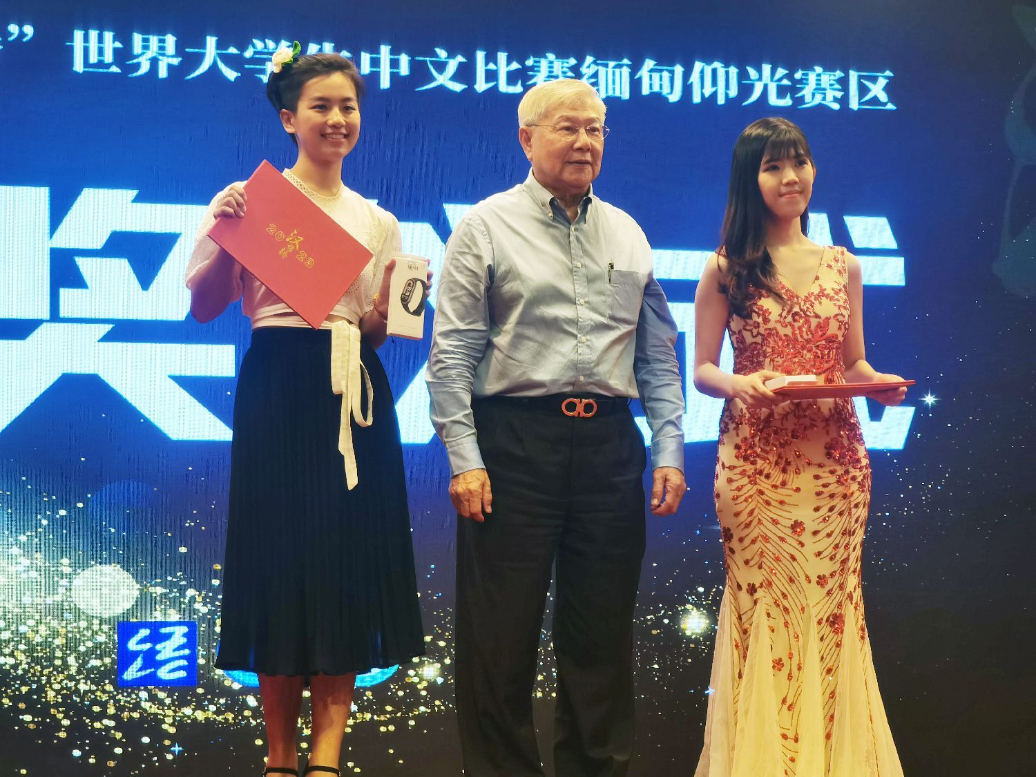 许智民会长在致辞中表示汉语桥的比赛为缅甸学习汉语的青年学生提供了展示汉语能力的舞台,创造了一个互相学习,互相交流的平台。目前缅甸疫情转行稳定,各中文教育机构逐渐恢复线下教育活动,汉语桥的举办激发了学生对汉语学习应用的兴趣和热情,促进了学生们对汉语和中华民族优秀文化的理解,推动汉语教育进一步的发展,从而培养出更多更加优秀的中缅友好青年人才。