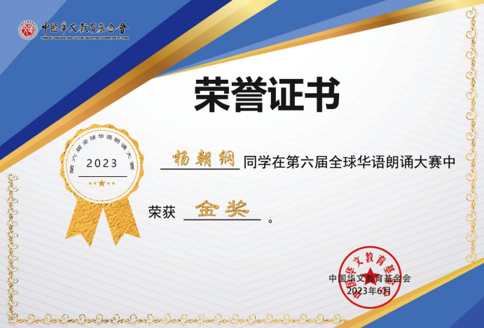 由中国华文教育基金会主办的第六届全球华语朗诵大赛历经3个多月,于6月20日圆满结束。此次大赛以“唐音华韵展露风采,四海五洲颂扬和平”为主题。旨在通过诵读中华经典,弘扬中华优秀文化,推进文化自信自强,培养学生热爱和平的思想感情。