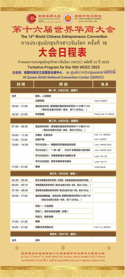 “汇华商大智慧,谱华族新篇章”。6月24日到26日,第十六届世界华商大会在泰国曼谷诗丽吉国家会展中心圆满成功举行,本届大会由泰国中华总商会主办,50多个国家的4000多位华商领袖及代表齐聚一堂,共话发展。这是后疫情时代的首次全球华商盛会,受到了广泛关注,与会嘉宾共同探讨了世界华商的全球发展机遇。