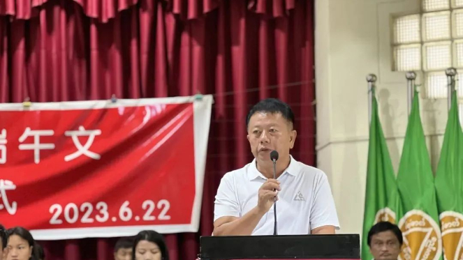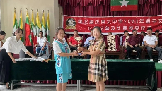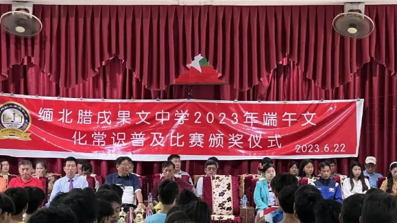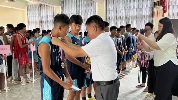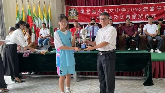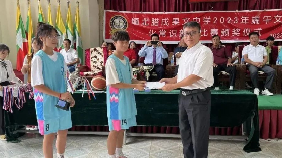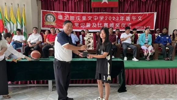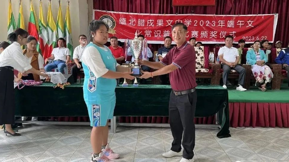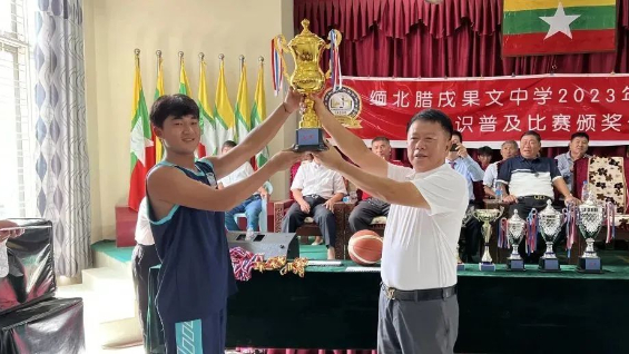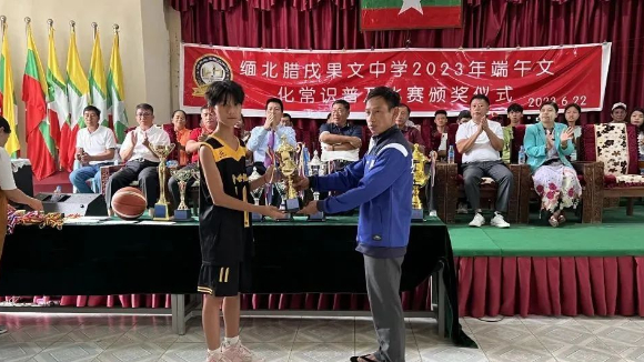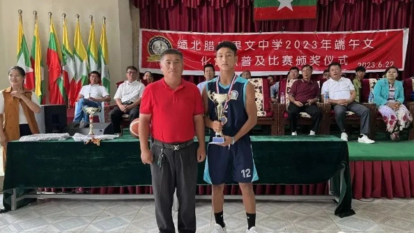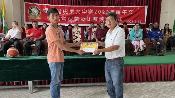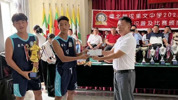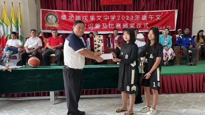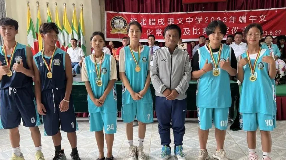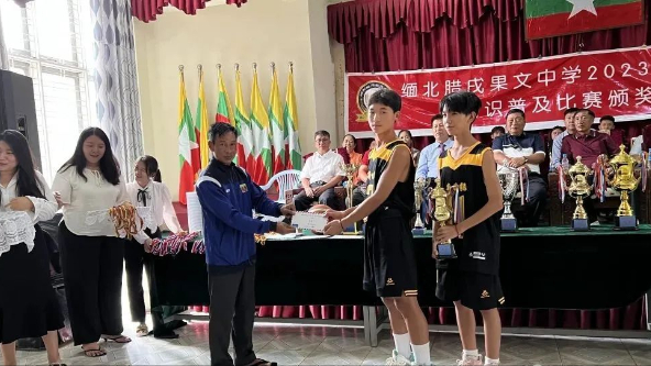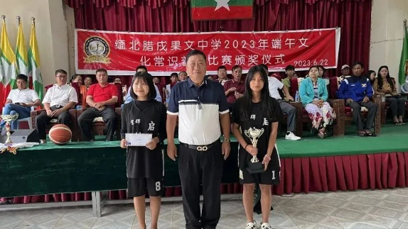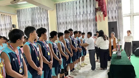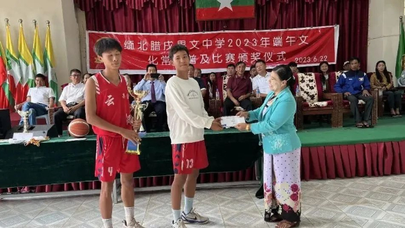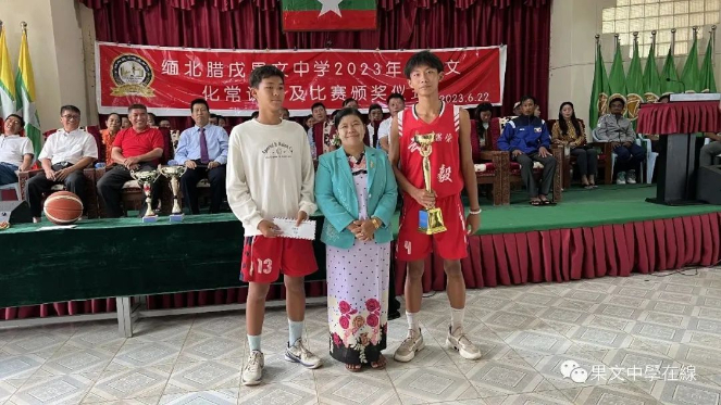 经过暴雨的洗礼,通过天时不利的大考,果文中学2023年端午文化比赛活动校际篮球邀请赛靠人和于6月25日早上缅甸时间8:30在我校礼堂举行闭幕仪式暨颁奖仪式,宣告完美收官。▼ 闭幕仪式暨颁奖仪式由李家润(缅语)、李好(中文)两位老师主持。▼ 腊戌市体育长、魏开智董事长、卢勇欣校长、李绍清监事长、缅文学校校长、杨治平常务副董事长、何忠强副校长、马以忠副校长、杨权副董事长、赵仁发副董事长、杨体良副董事长、杨世城副董事长、段胜中秘书长、钟天穗董事、李义元董事、李承义校友、段家茹董事、杨家蕊董事等莅临指导并颁奖。▼ |