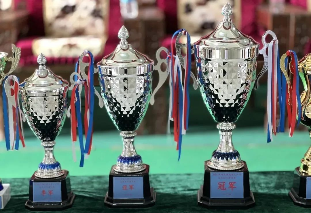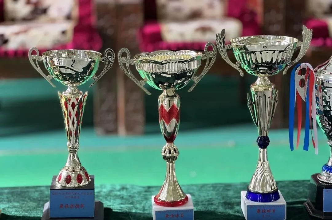 魏开智董事长为男子组冠军果文球队颁发奖杯和奖金,并为运动员佩戴奖牌。▼