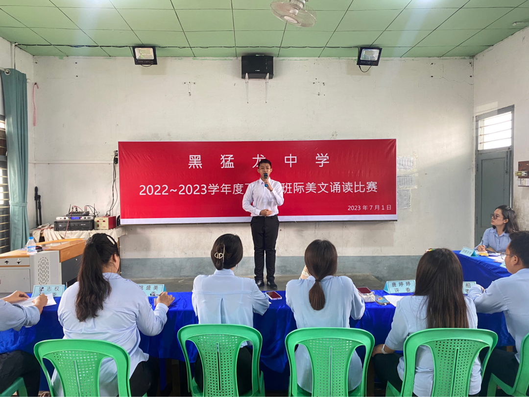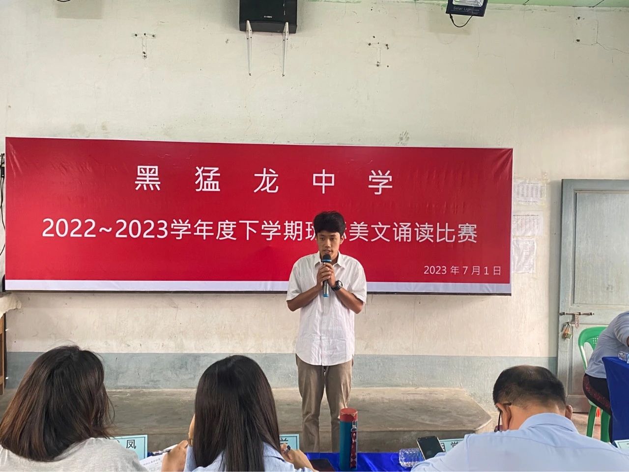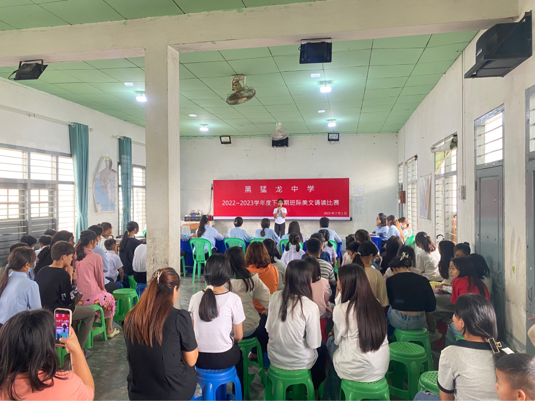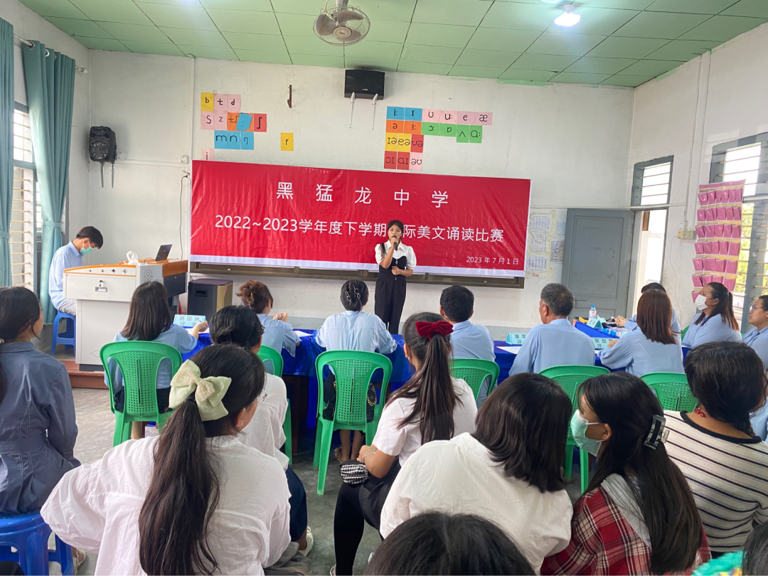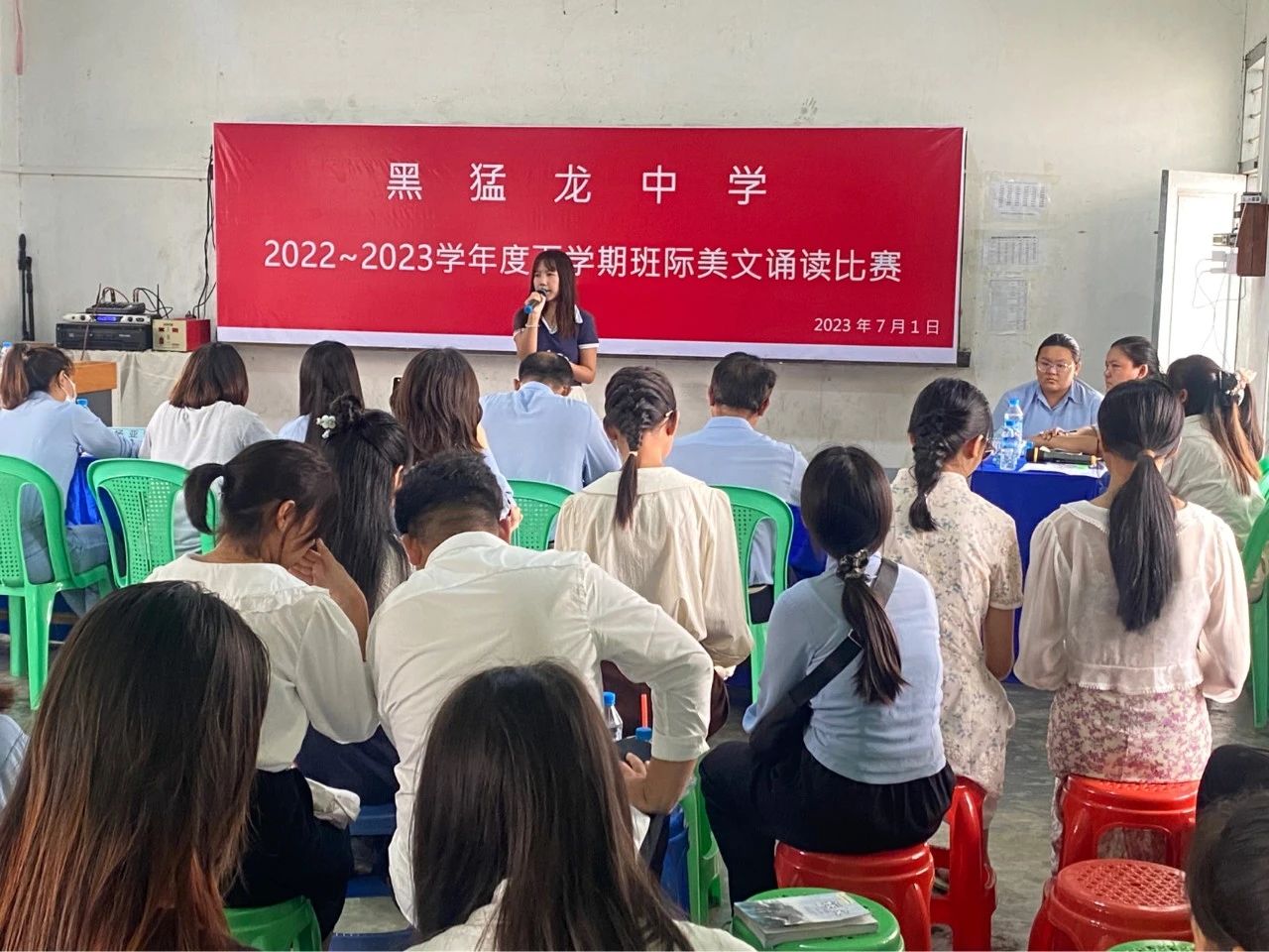 2023年7月1日,腊戌黑猛龙中学为提高学生学习华语文的积极性,营造富有激情、富有青春气息的校园文化氛围,提升学生的语言表达能力、艺术修养和审美素养,增强学生的自信心,促进学生之间相互观摩、学习交流和个性的塑造,按学期行事历计划,如期举办了班际美文诵读比赛。