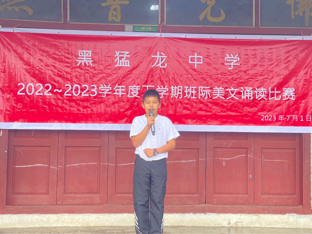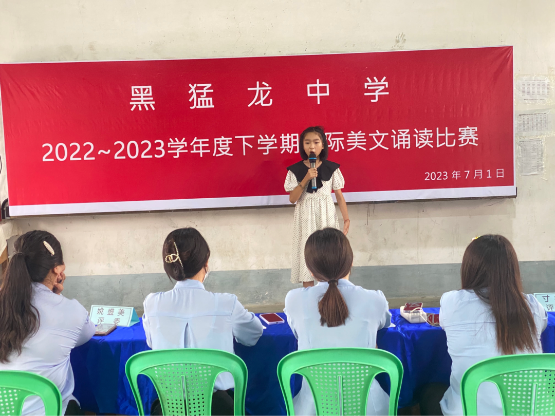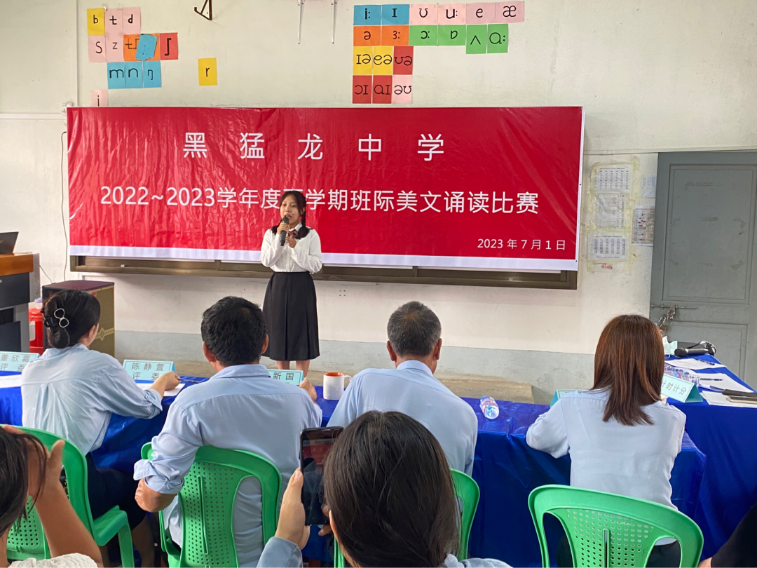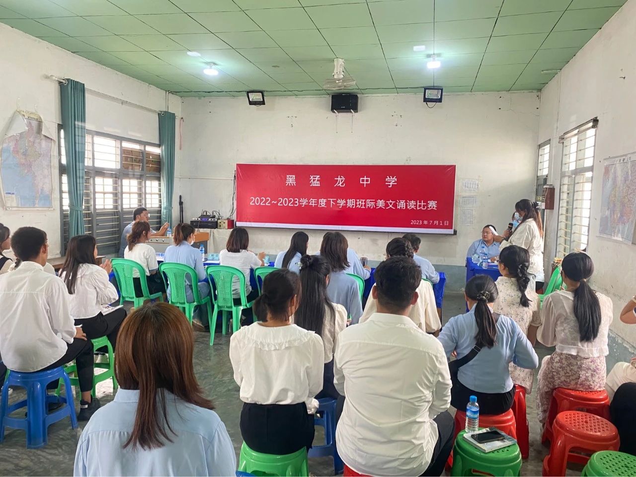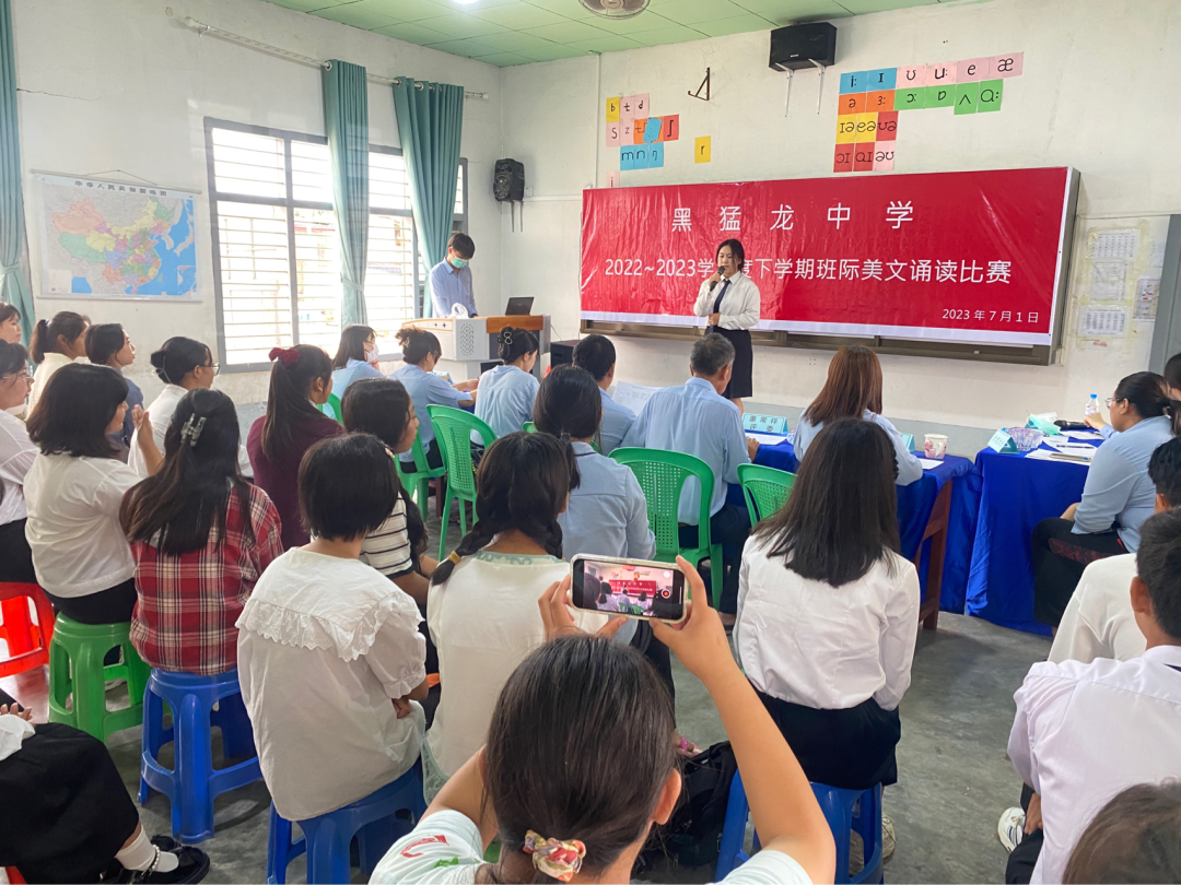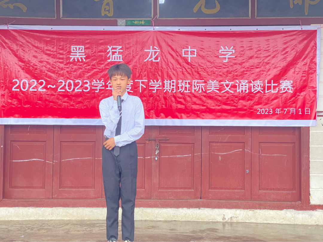 2023年7月1日,腊戌黑猛龙中学为提高学生学习华语文的积极性,营造富有激情、富有青春气息的校园文化氛围,提升学生的语言表达能力、艺术修养和审美素养,增强学生的自信心,促进学生之间相互观摩、学习交流和个性的塑造,按学期行事历计划,如期举办了班际美文诵读比赛。