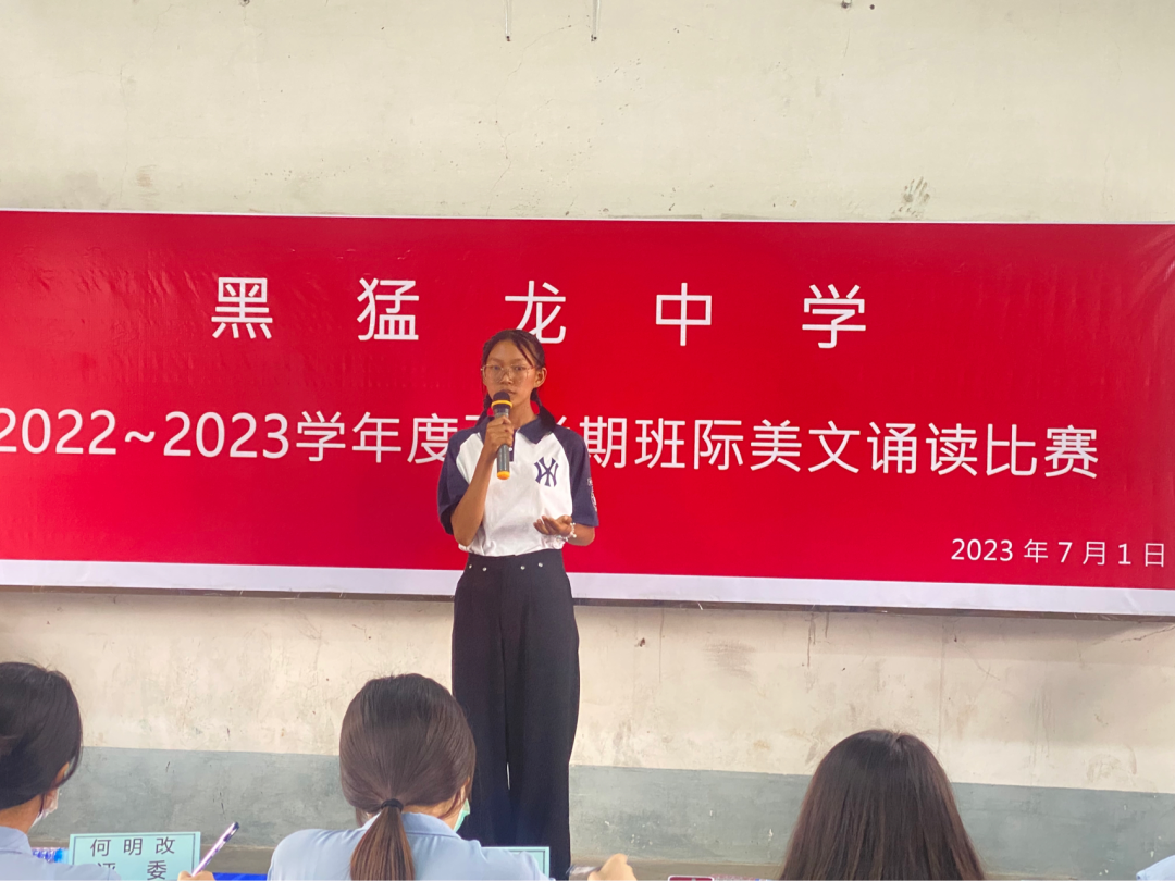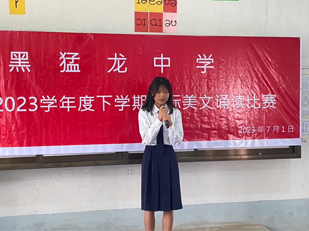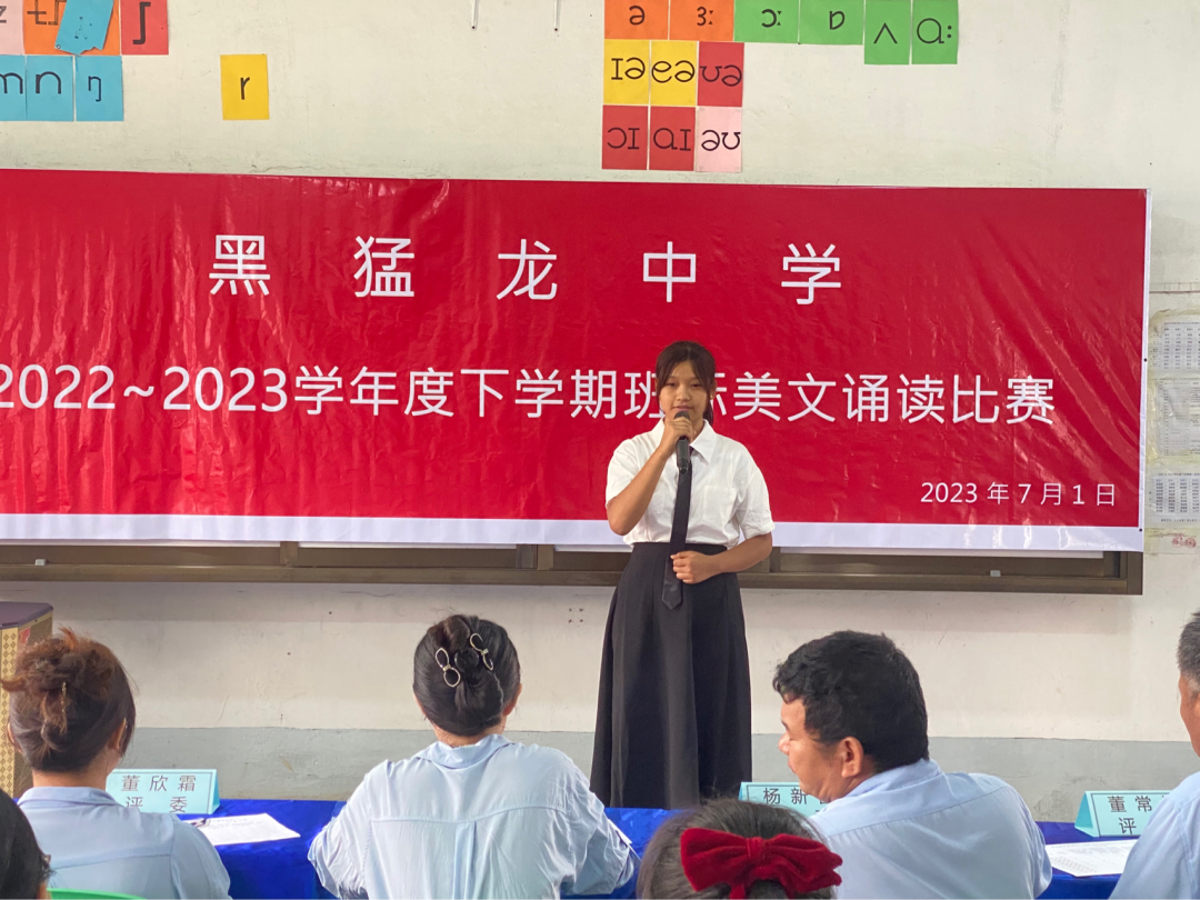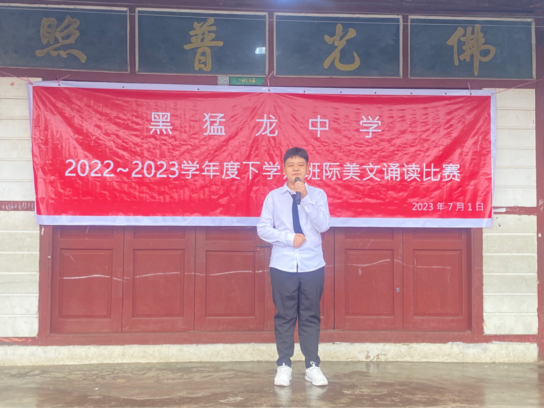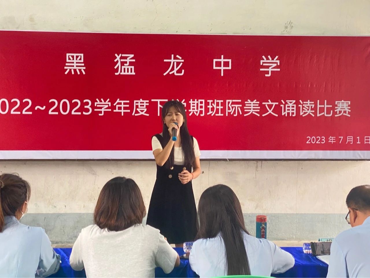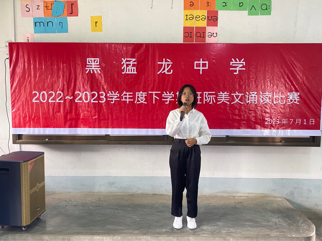 2023年7月1日,腊戌黑猛龙中学为提高学生学习华语文的积极性,营造富有激情、富有青春气息的校园文化氛围,提升学生的语言表达能力、艺术修养和审美素养,增强学生的自信心,促进学生之间相互观摩、学习交流和个性的塑造,按学期行事历计划,如期举办了班际美文诵读比赛。