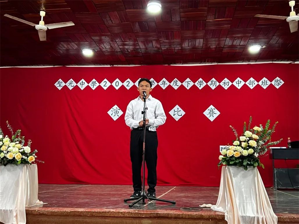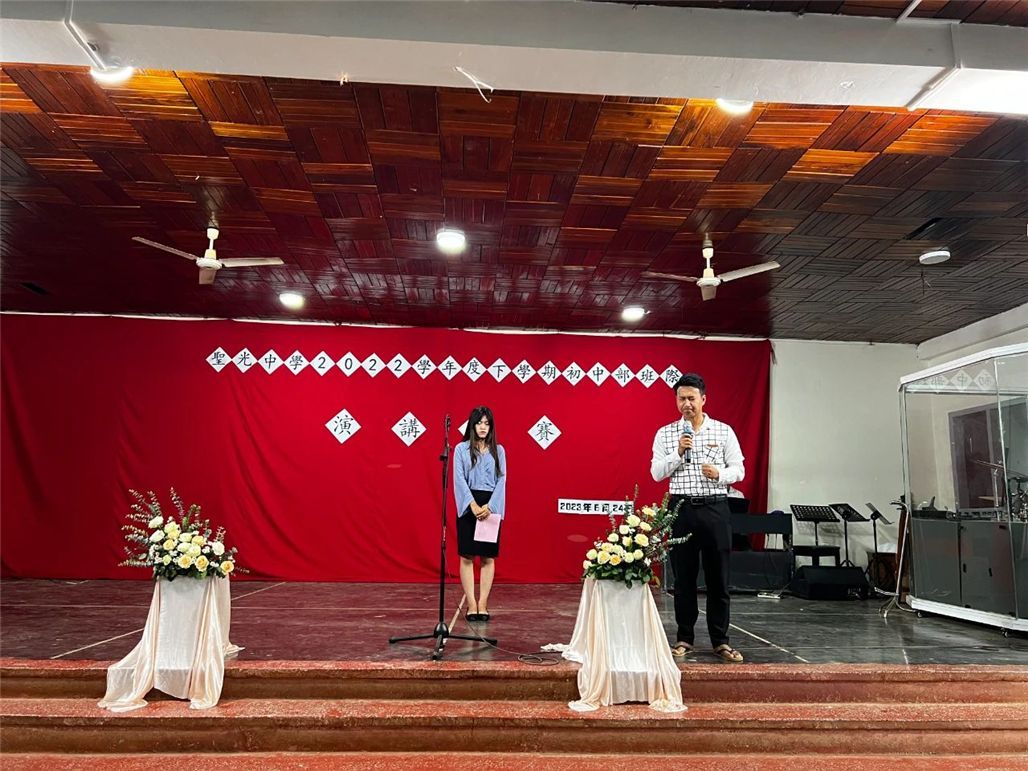 首先在庄严的校歌声中为比赛拉开序幕,段建明老师为比赛开始祷告。本校李明昌校长致词,李校长说,演讲是交流沟通中的重要一环,通过演讲可以培养学生自信,锻炼写作与表达能力。同时也举二次大战英国首相邱吉尔为例不是天生就是演说家,都是靠锻炼,希望同学们抓住机会,相信通过比赛,同学们一定会进步,校长还说,未来还将举办英语、缅语演讲比赛,期勉同学们平日就能加强三语学习。教务处陈千千主任介绍评委及宣布比赛规则。