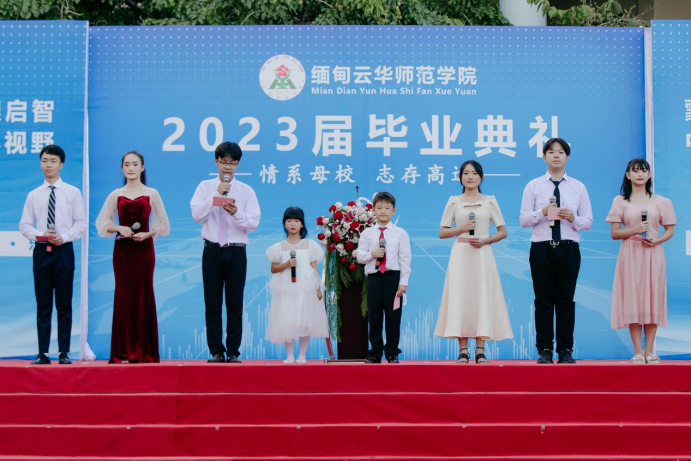 7月9号早上,云华师范学院2023届毕业生毕(结)业典礼在学校操场举行。中国驻曼德勒总领事馆孟庆星领事、李应武领事,云华师范学院蒋恩悌董事长及各位学校董事,云华师范学院杨周代理院长及学校全体教师,学生家长以及学校毕(结)业生参加了此次典礼活动。