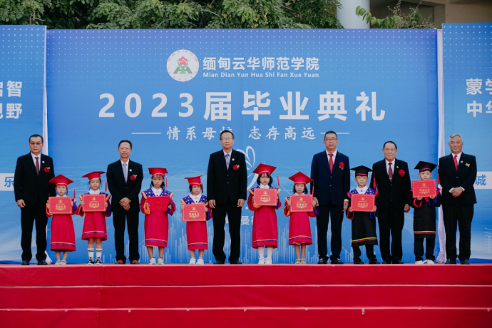 节目表演之后,幼稚园杨会雄园长、小学部宋筱艾副主任、中学部刘莹主任、师范部丁浩主任为2023届云华师范学院优秀毕(结)业生颁发了荣誉证书。