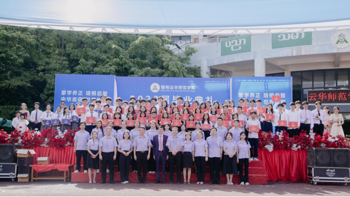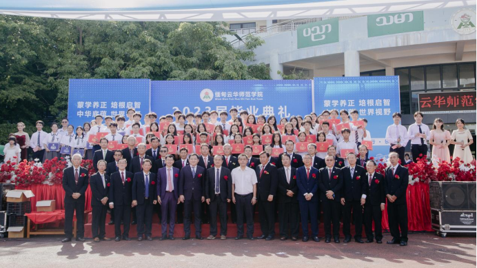 最后,伴随着师范部大一学生为母校带来了的校歌大合唱,在“云华,前辈开创的丰碑,云华,我们成长的摇篮”的歌声中,在一张全体董事、嘉宾、老师、毕(结)业学生的大合照中,云华师范学院2023届毕(结)业典礼圆满结束。