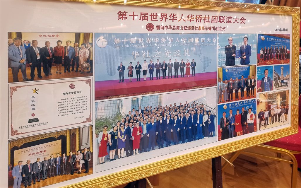 【缅甸金凤凰记者长羽仰光报道】2023年5月9日,中国首都北京,人民大会堂,第十届世界华侨华人社团联谊大会举行“华社之光”巡礼活动,缅甸中华总商会荣获海外侨团最高荣誉“华社之光”,这样的殊荣全球仅有十家。