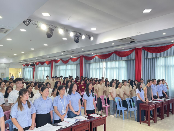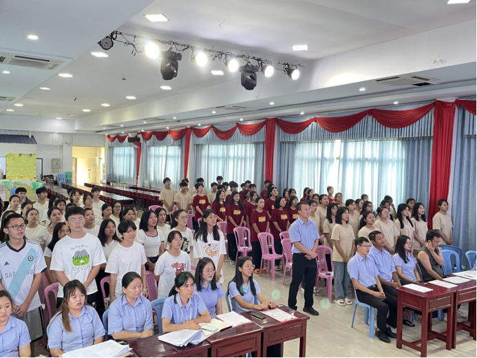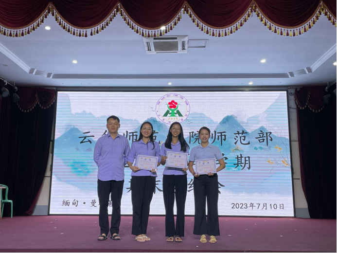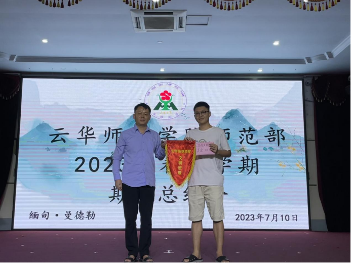 首先,全体师生庄严肃穆地奏唱了缅甸国歌、云华校歌,全体学生呼号、行礼。郭文康副院长首先进行了线上致辞,郭老师总结了本学期师范部学生的学习和进步,分析了同学们在本学期的缺点和不足,并希望师范部同学在下学期取得更好的成绩。