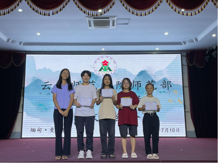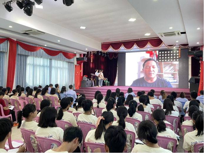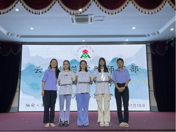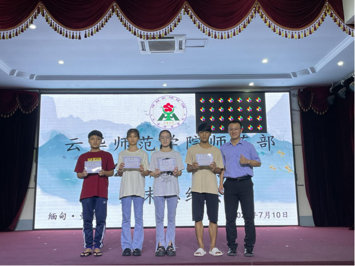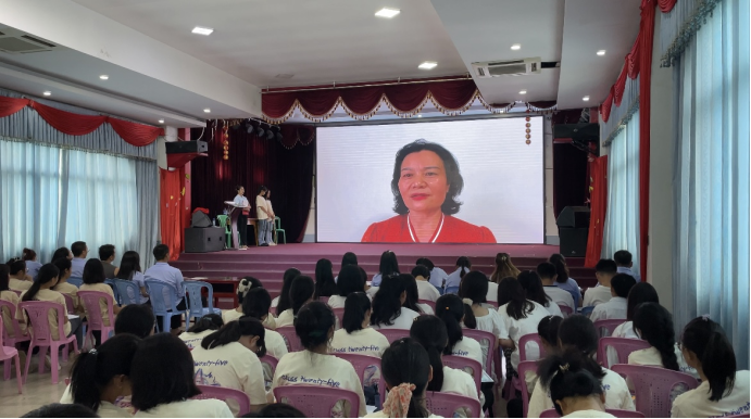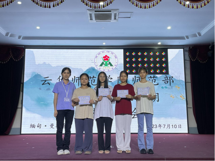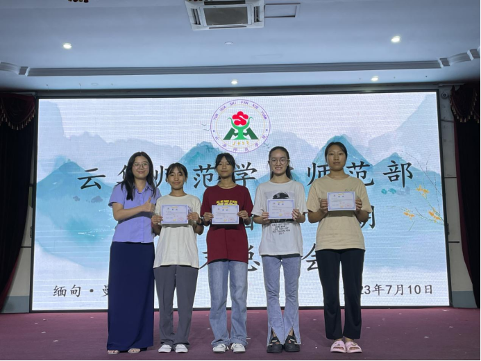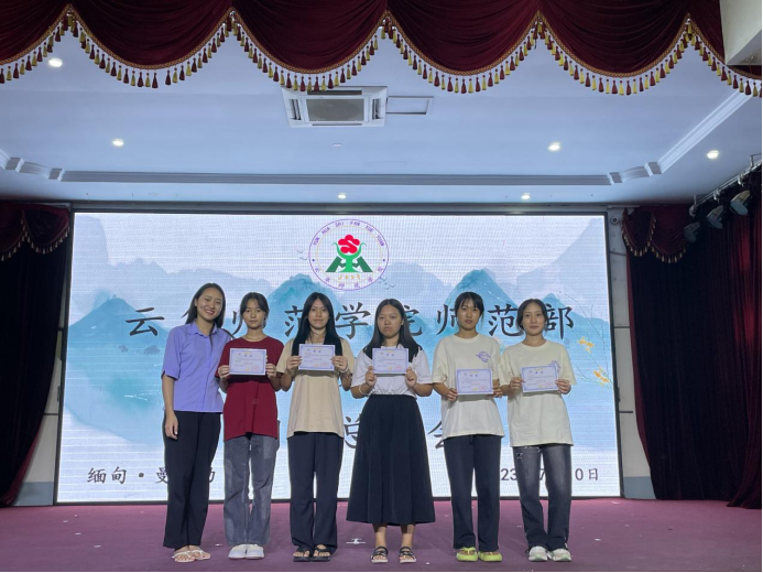 线上教师代表宝翠兰老师通过视频发表了自己的讲话,她希望师范部的学生能够努力成为对社会、对父母、对家庭有所帮助的人;辅导员教师代表尹艳婷老师也做了发言,她认为,作为一名辅导员,不仅要关心学生的学习成绩,更要关心学生的心理健康和全面发展;在缅教师郭紫菱老师进行了发言,她希望师范部同学们都能再自信一些,发现属于自己的闪光点。