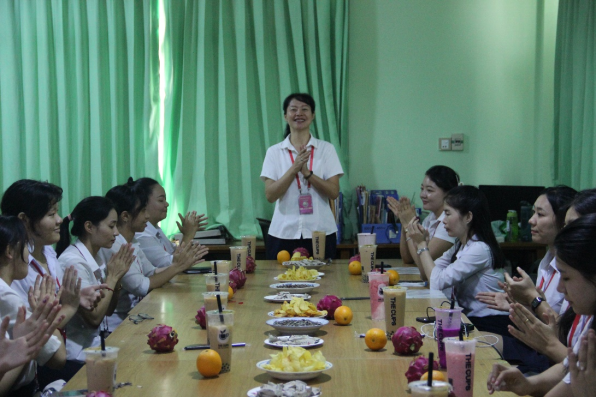 会议在轻松愉快的氛围中进行,学校为老师们准备了瓜子、糖果、奶茶等果食饮品,大家一边享用,一边做工作总结。教学主任孙国荟老师首先就教学工作作简要总结,谈及工作虽然略显忙碌,但收获不小;老师们备课用心,上课用心,还积极听课学习,取长补短。导育和教务主任也分别对各自负责的工作做了认真总结。之后,老师们踊跃发言,不止谈工作、谈计划,还交流与孩子相处的各种趣事。