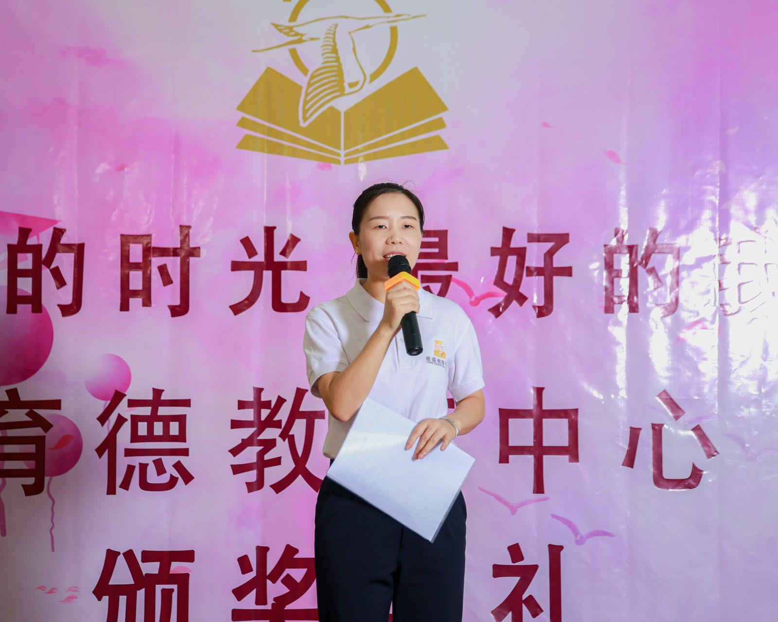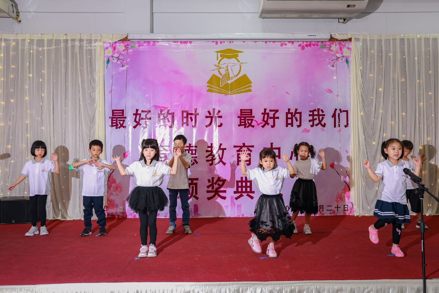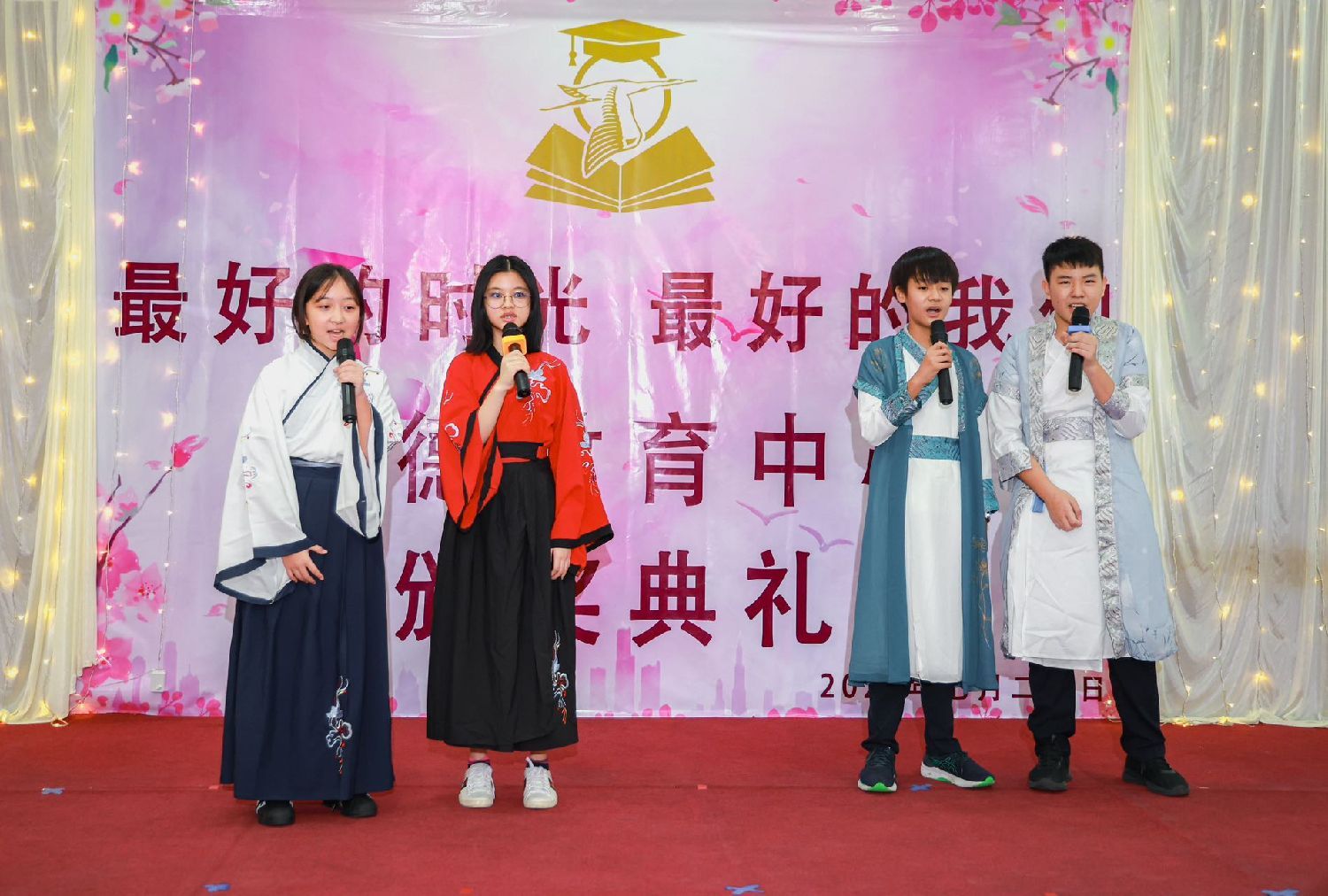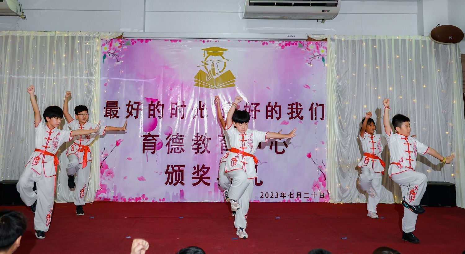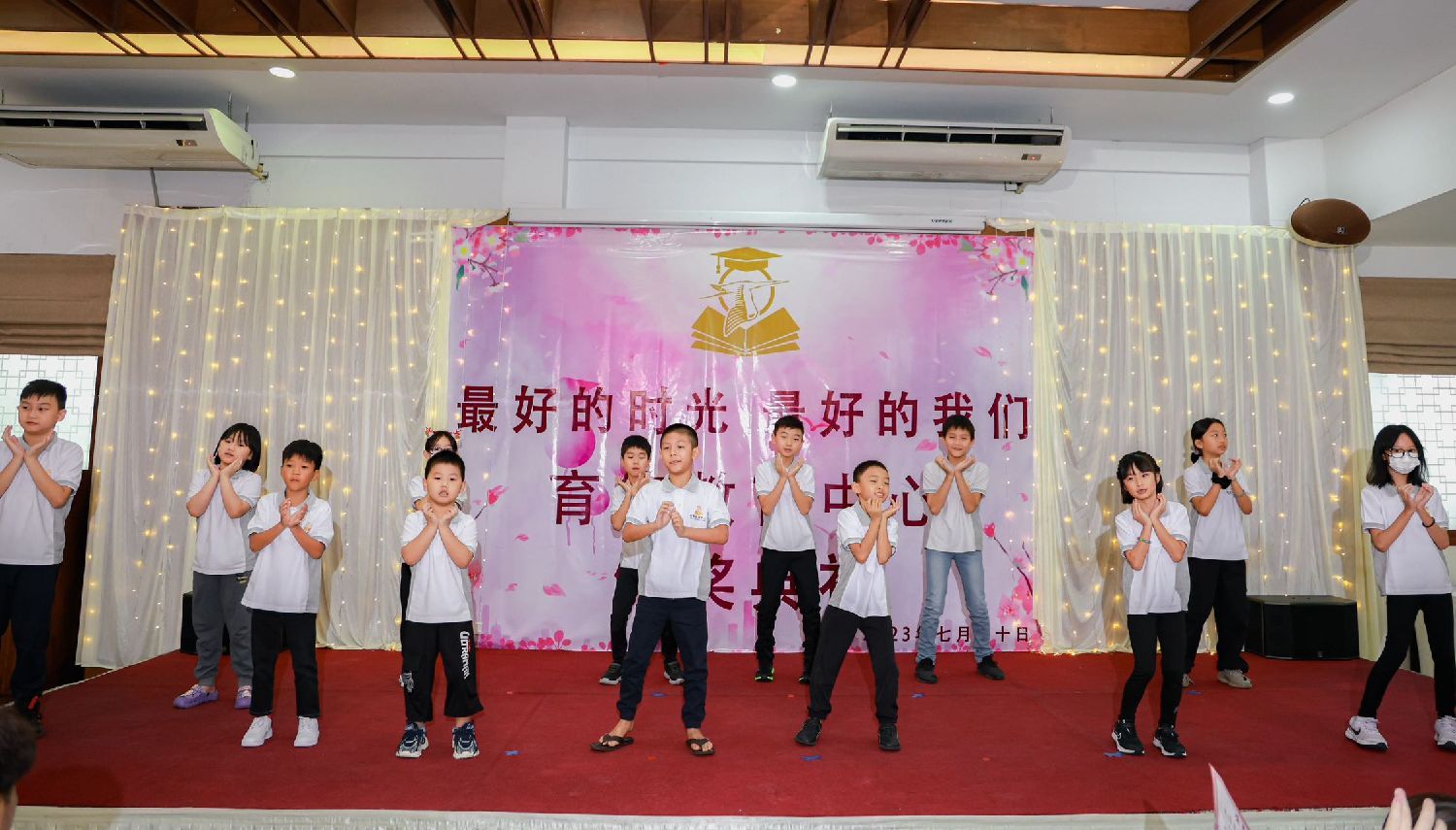 暑假班的学员们也为观众带来了惊喜,通过课堂花絮和精心准备的表演展示了他们的才艺和成长。其中,他们以清晰动人的朗诵和古诗《咏鹅》赢得了观众的阵阵掌声。