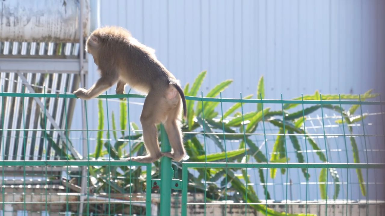 到达现场后,民警发现猴子在居民家中来回溜达,时而攀爬树木,时而跳跃至楼顶,动作十分敏捷。经仔细辨认,确定这只猴子为国家一级保护动物北豚尾猴(又称平顶猴)。