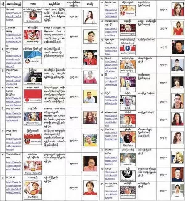 这40人中,有多人是著名的艺人(影视明星、歌星等),诸如茵德雅觉欣(Eaindra Kyawzin,多次获得最佳女主角的影星)、Min Maw Kun(获得过最佳男主角奖的影星)、Ye Taik(著名男影星)、R Zar Ni(著名男歌星)、Phway Phway(著名女影星)、Thet Mon Myint(著名女影星)、Connie(著名女歌星)、Warso Moe Oo(著名女影星及歌星)等等。