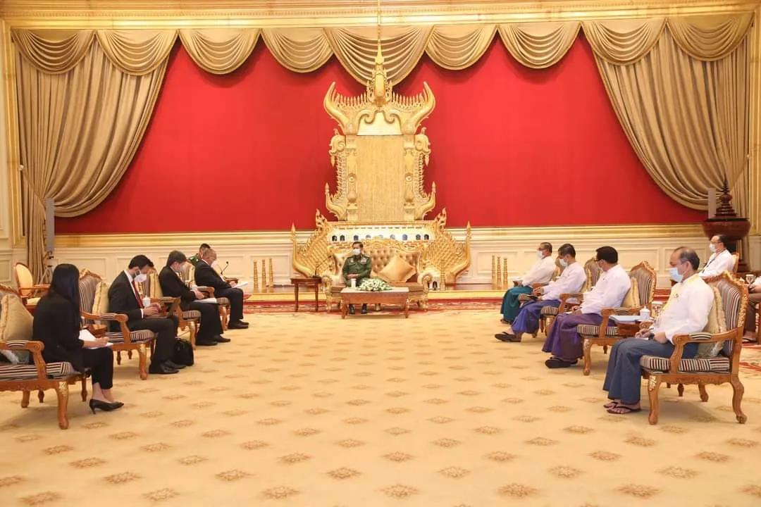 此前的6月4日,敏昂莱大将在内比都会见了东盟轮值主席国文莱外交事务主管部长艾瑞万和东盟秘书长林玉辉。会谈内容包括东盟领导人缅甸问题特别会议成果落实情况、国家和平稳定后重新举行大选以及人道主义援助等。