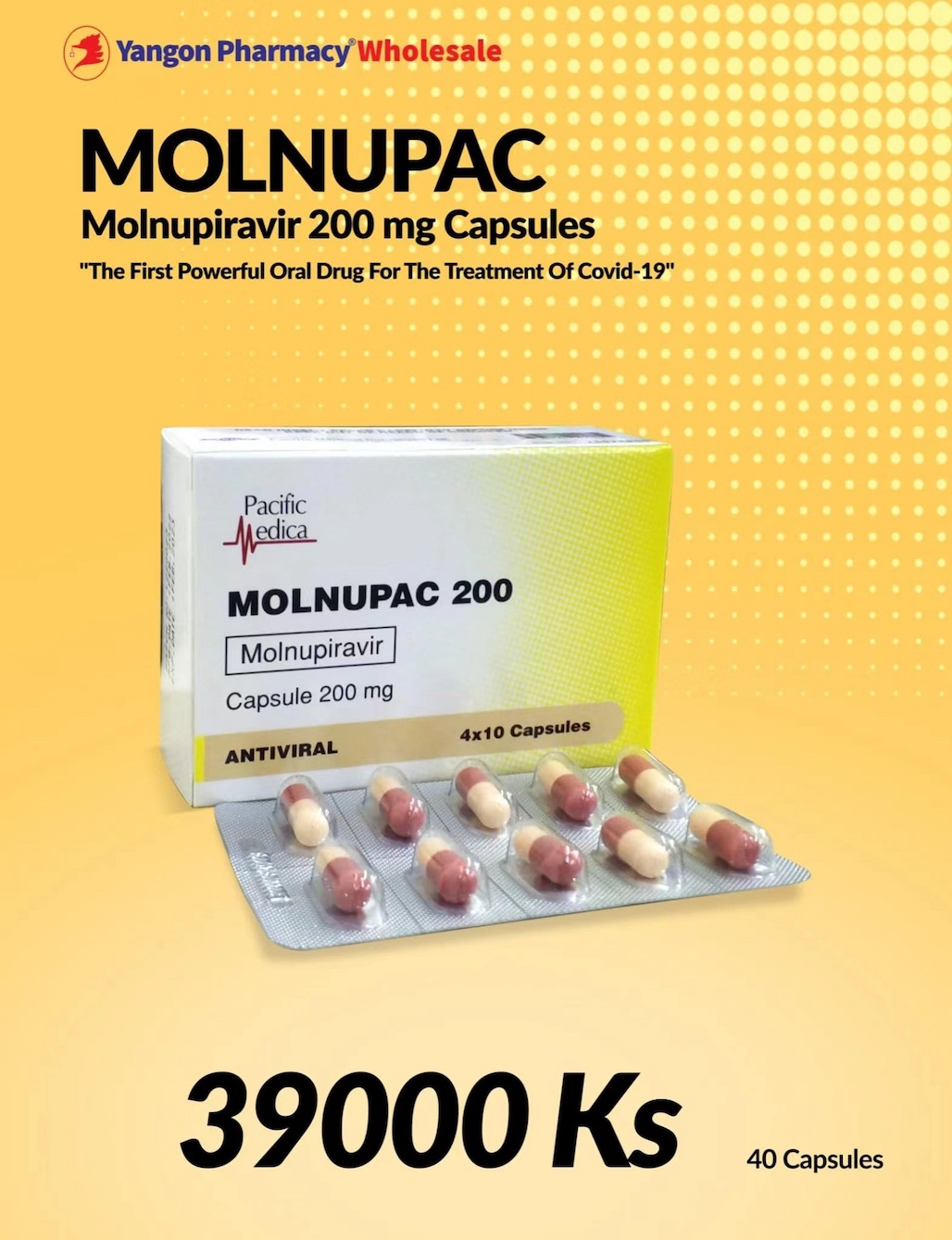 据悉,该公司经过多次研发,最终才取得胜利。MOLNUPAC200口服药物,在2021年底获得FDA认证。公司不以盈利为主要目标,鉴于公共卫生健康和保障每个人都负担得起,将一个疗程(MOLNUPAC200mg40颗)的售价定为39000缅元。在缅甸,凭医生的嘱咐即就可以购买。
