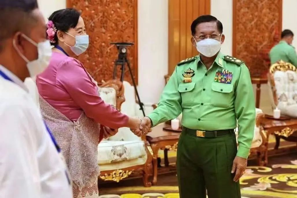 6月13日,国家管理委员会主席敏昂莱大将与若开解放党(ALP)副主席Daw Saw Mra Raza Linn率领的和平代表团在内比都举行和谈。