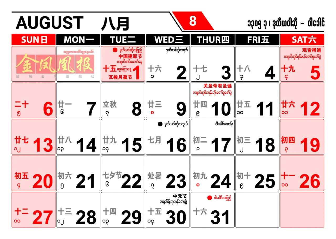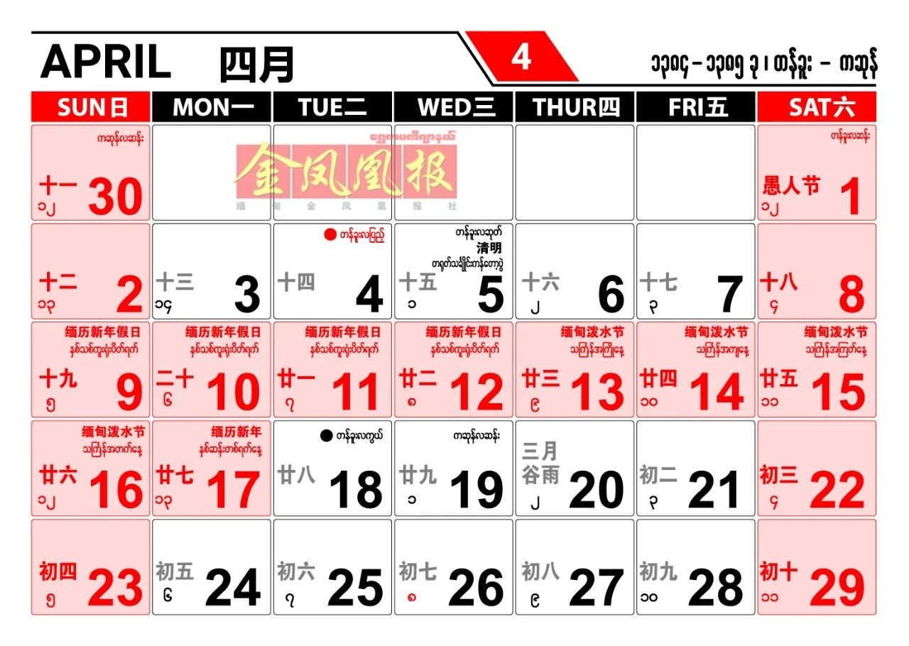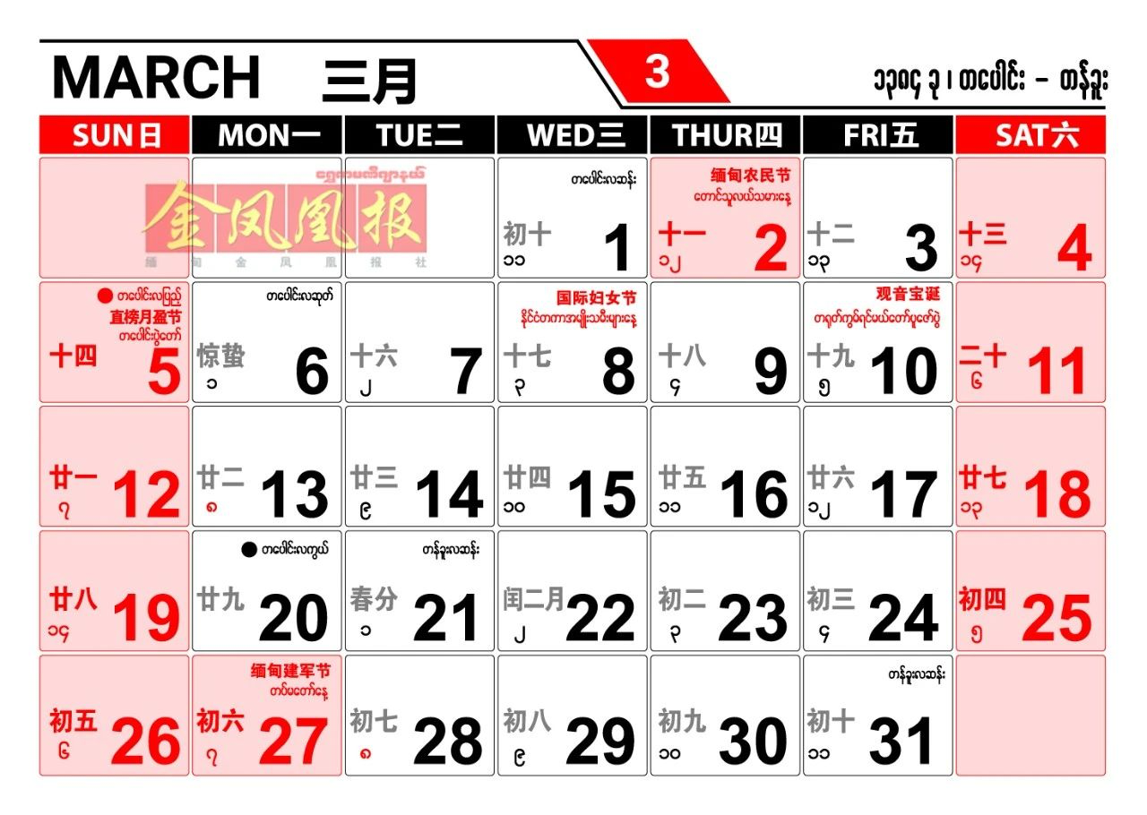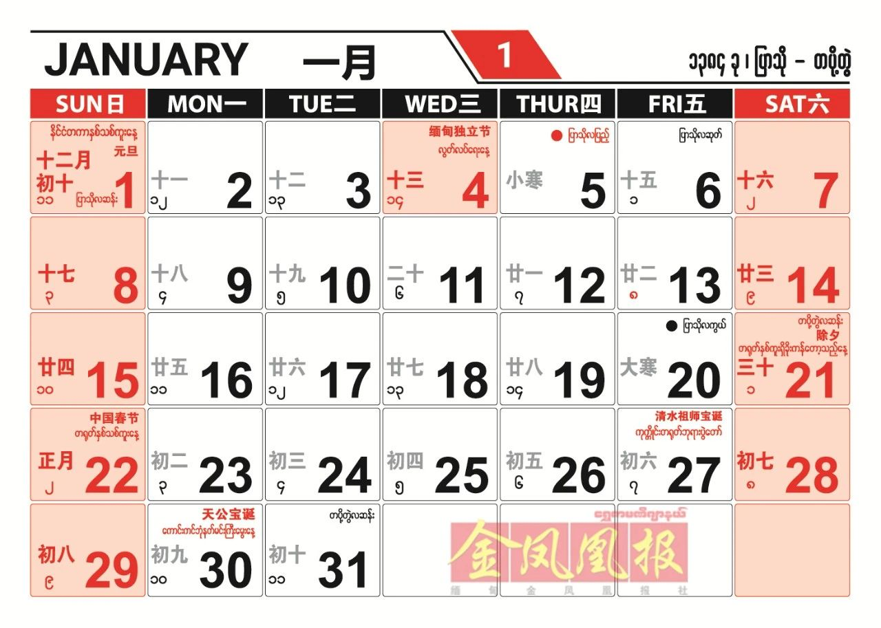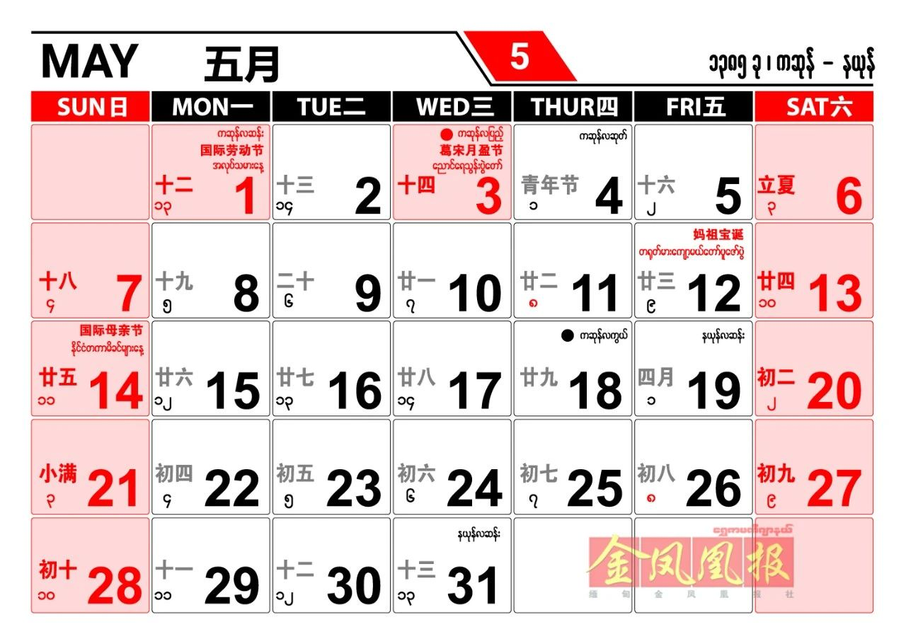 新年特供|金凤凰独家奉送《2023年最详细中缅双语日历》 节假日全囊括
