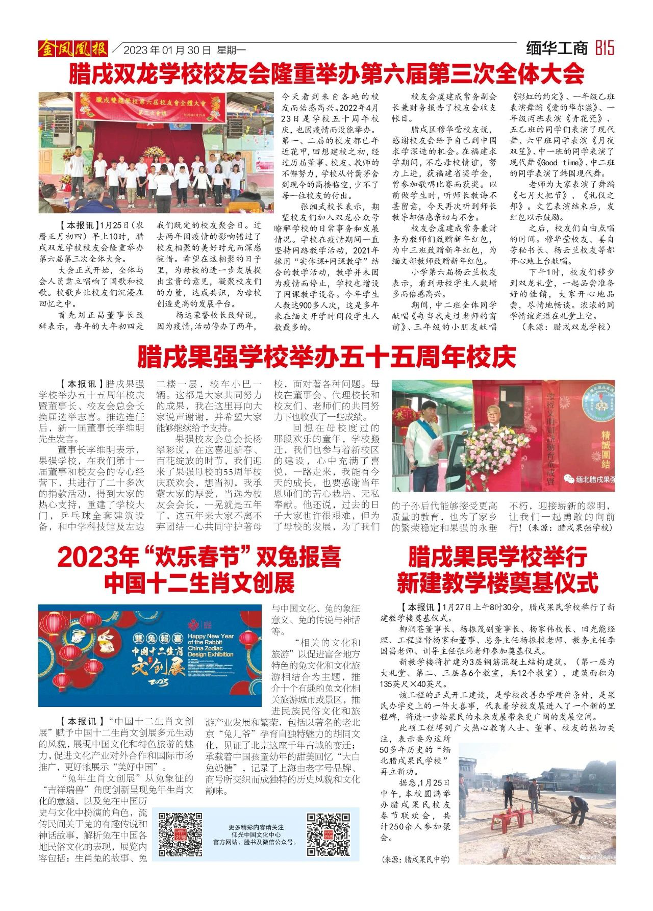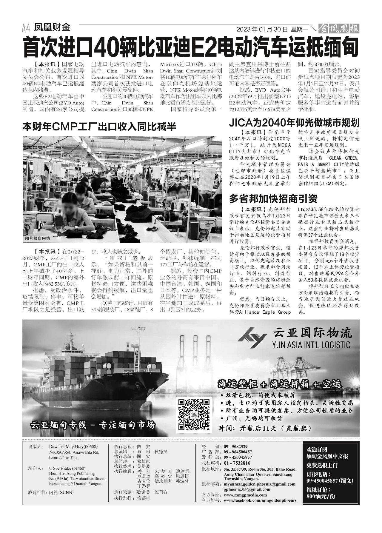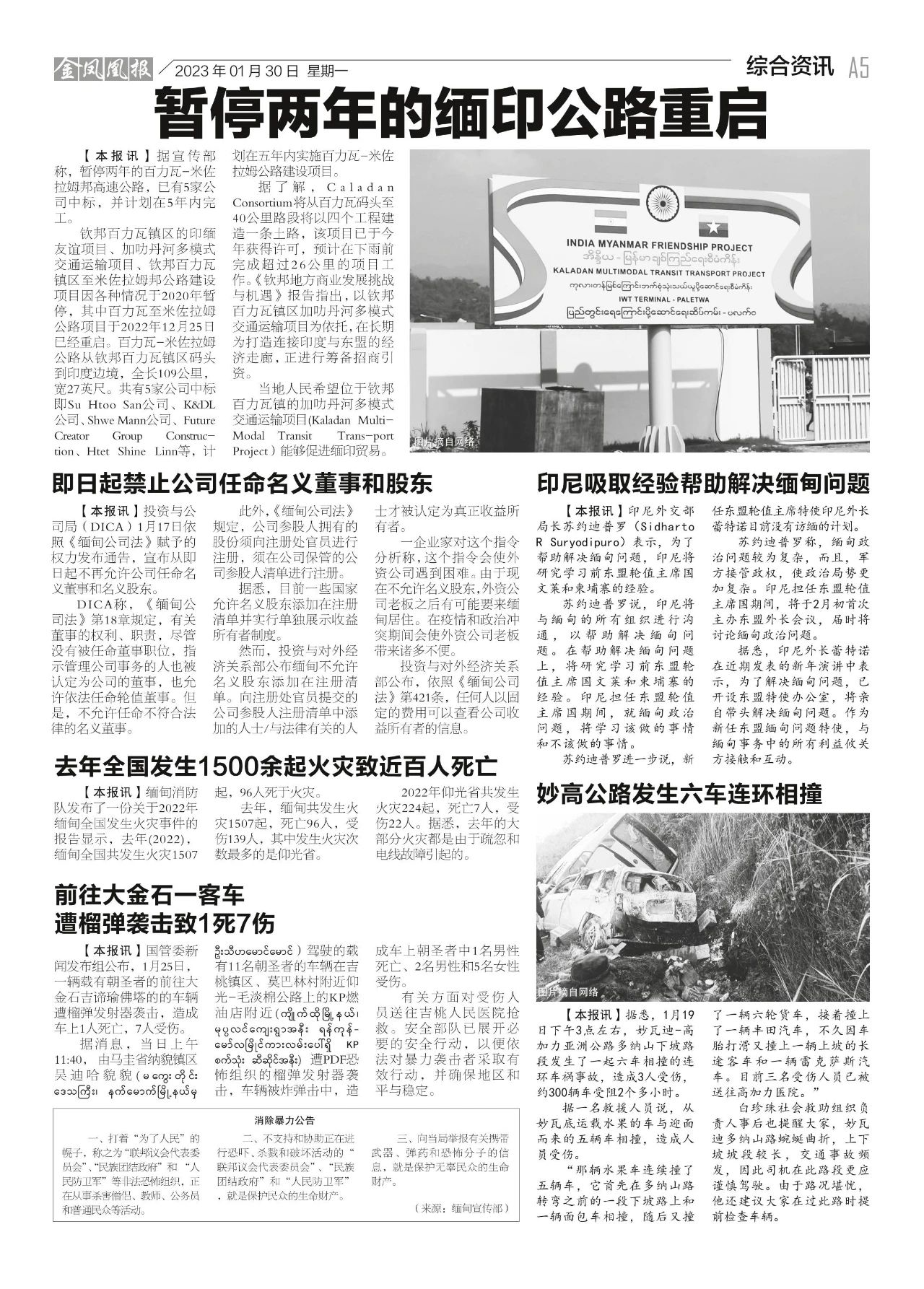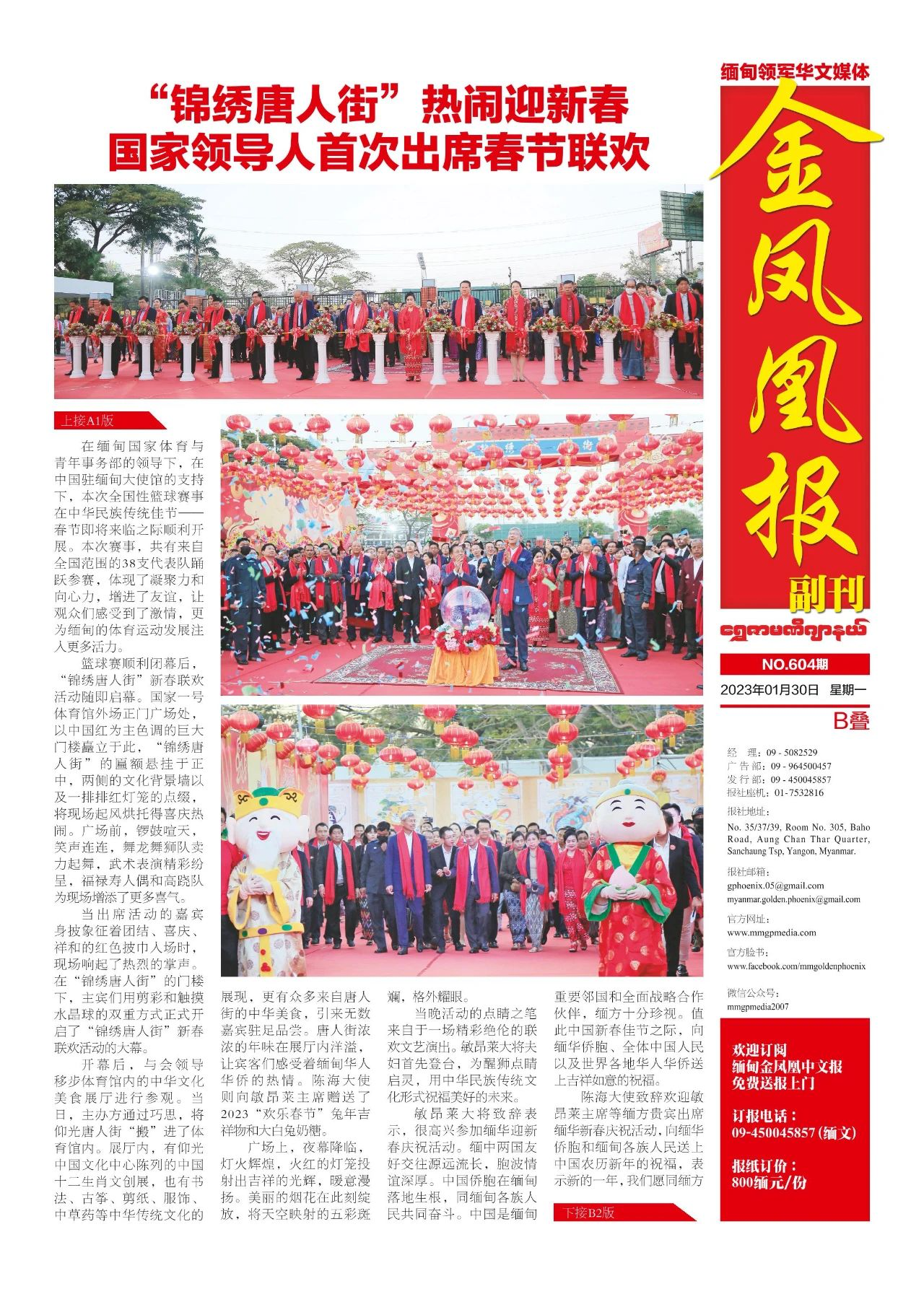 2023年1月30日出版的第604期《金凤凰报》电子报同时发送,为您带来关于缅甸最新最全的资讯。