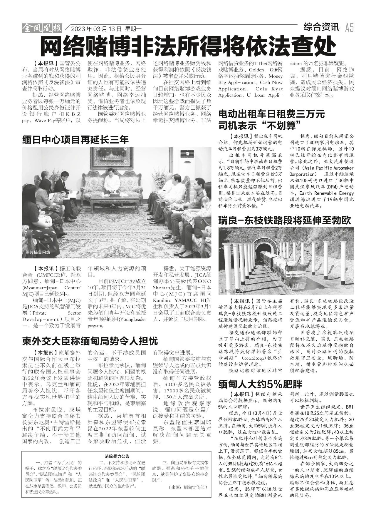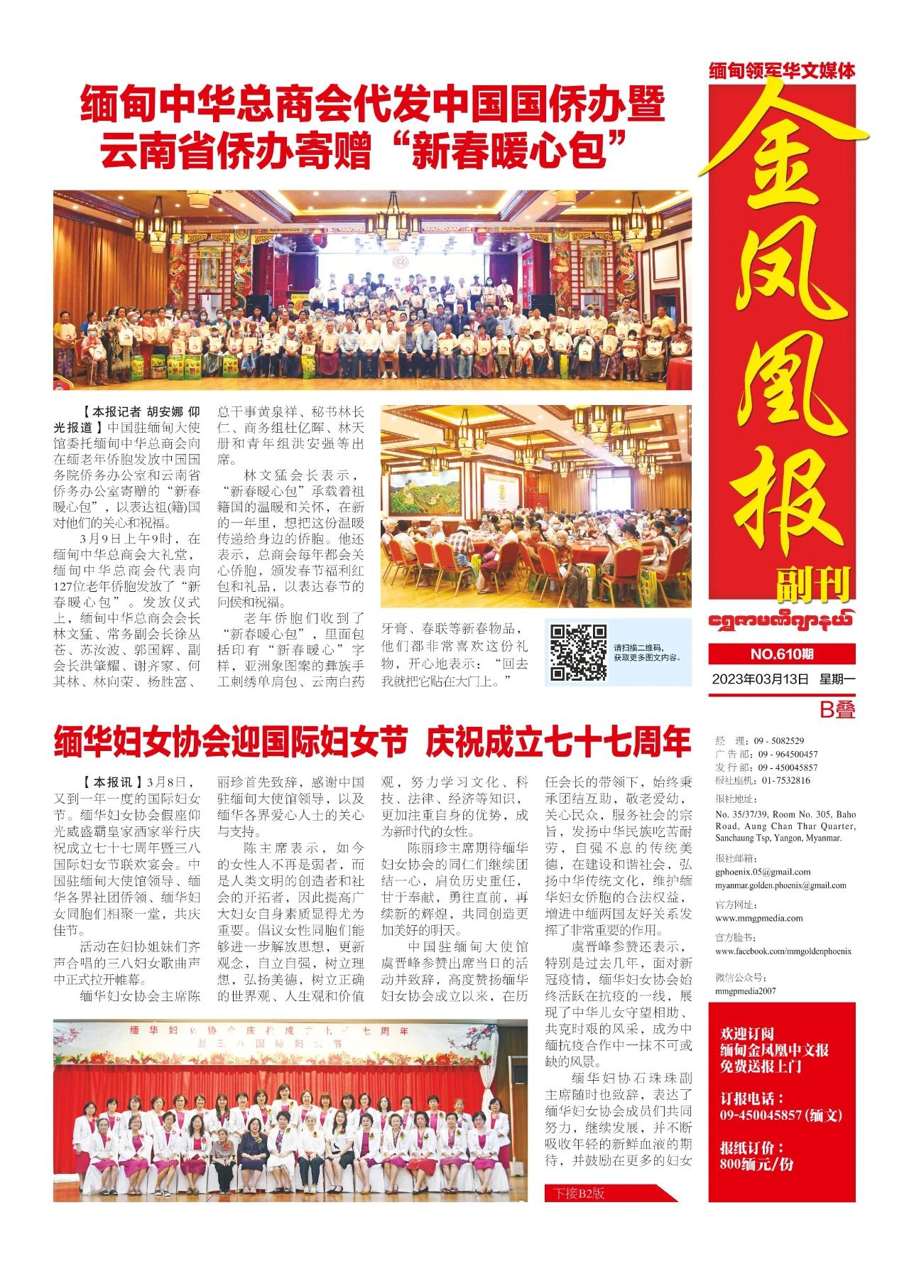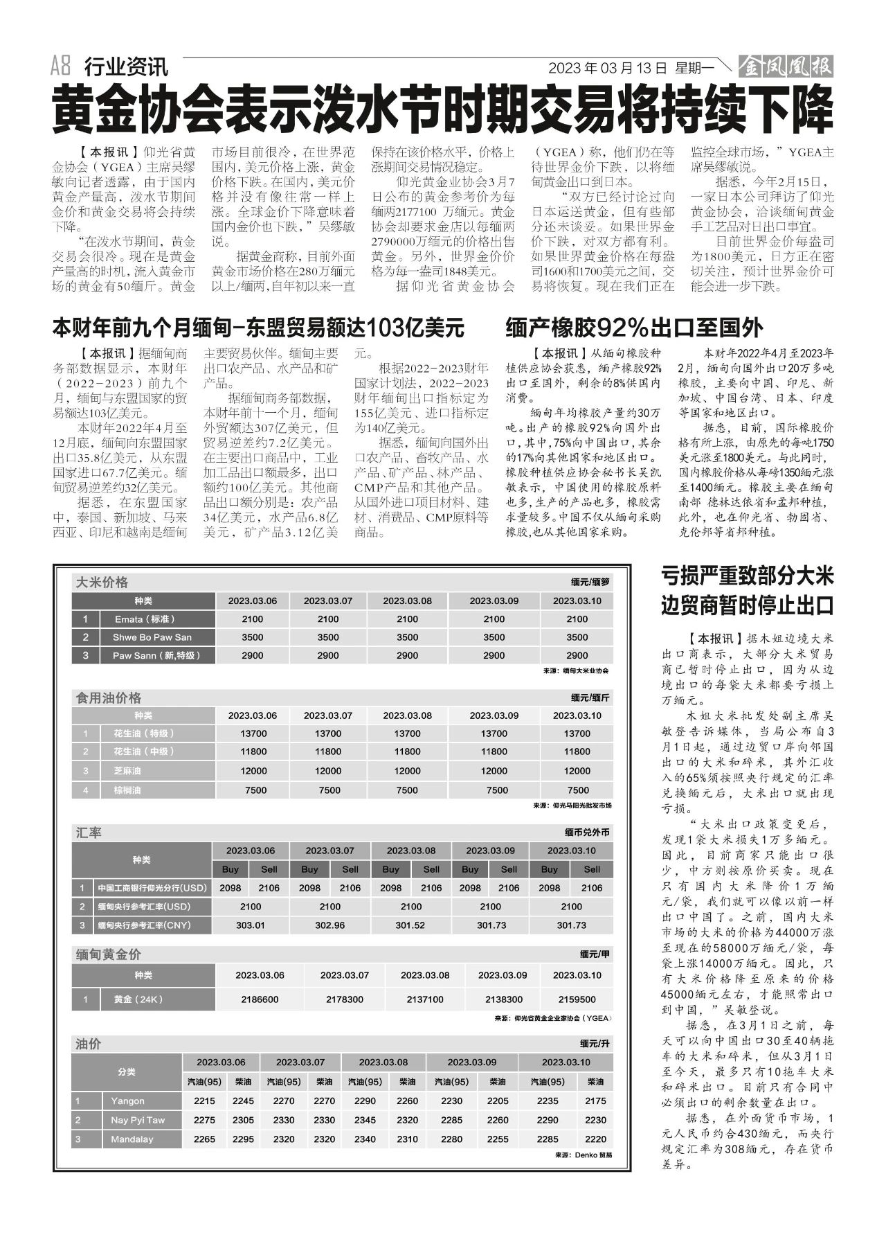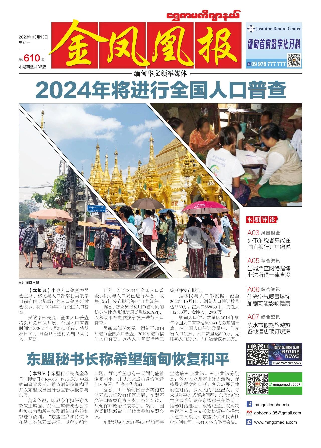 2023年3月13日出版的第610期《金凤凰报》电子报同时发送,为您带来关于缅甸最新最全的资讯。