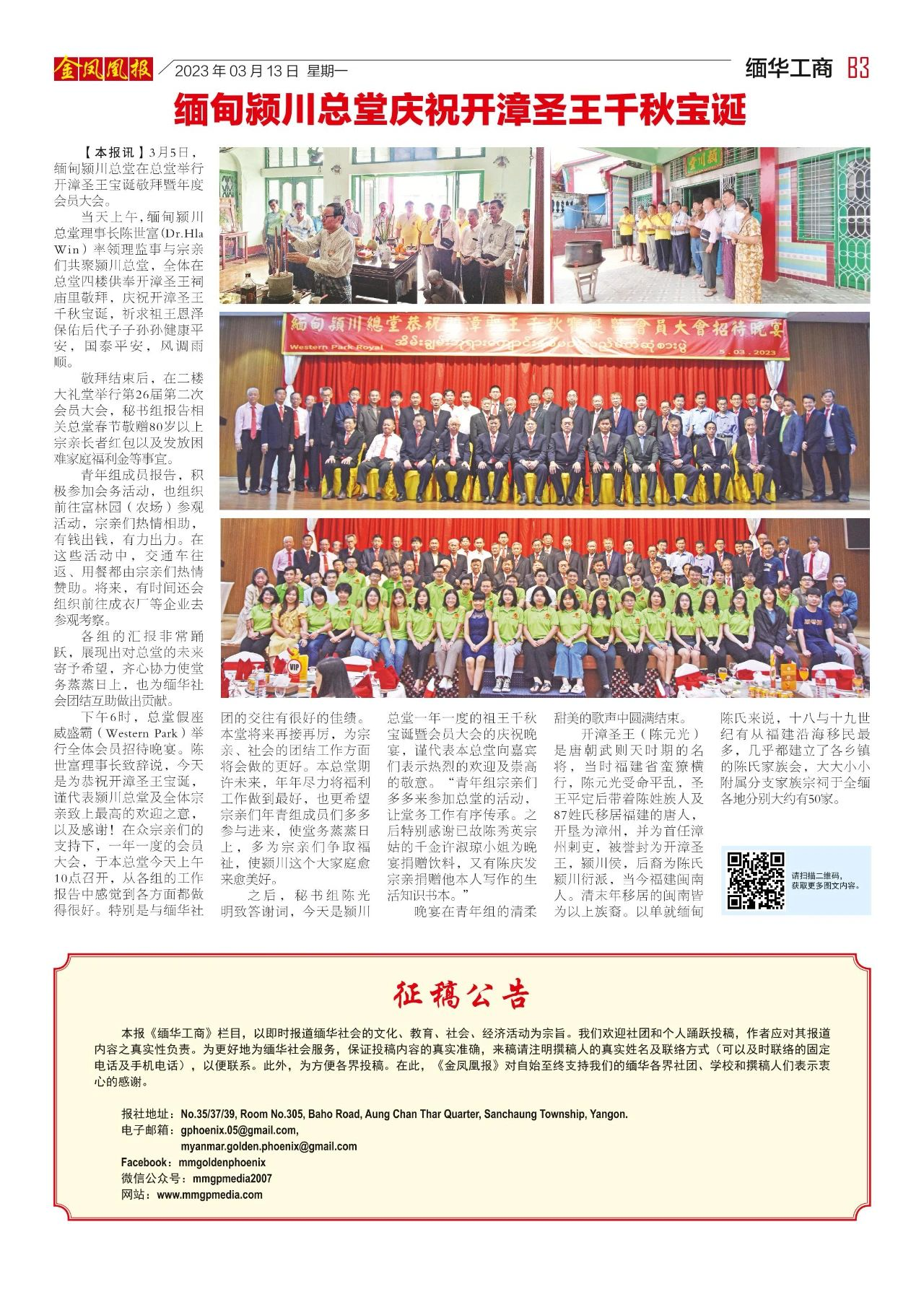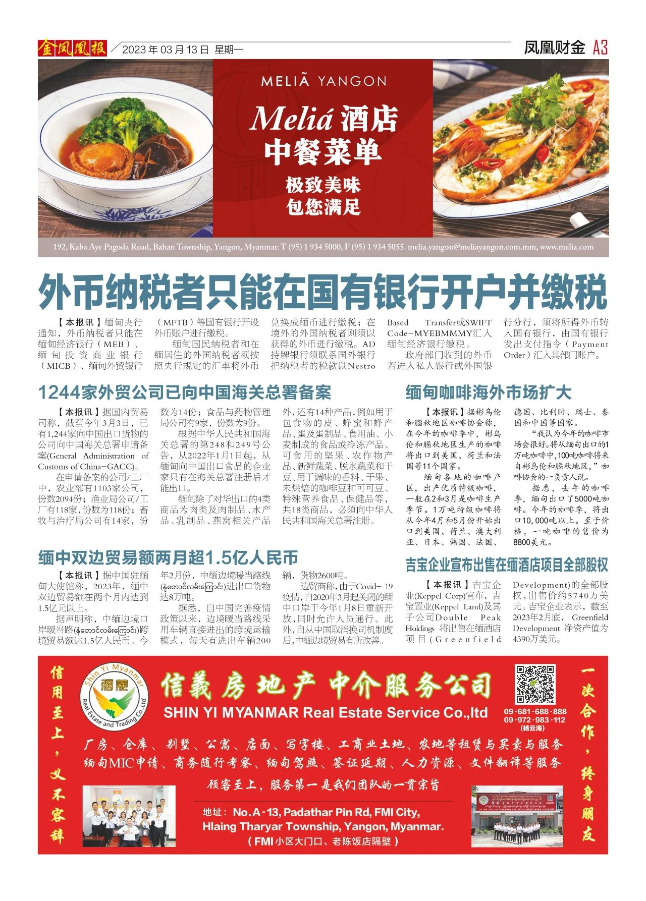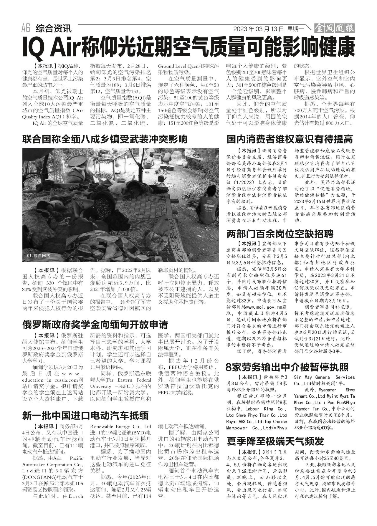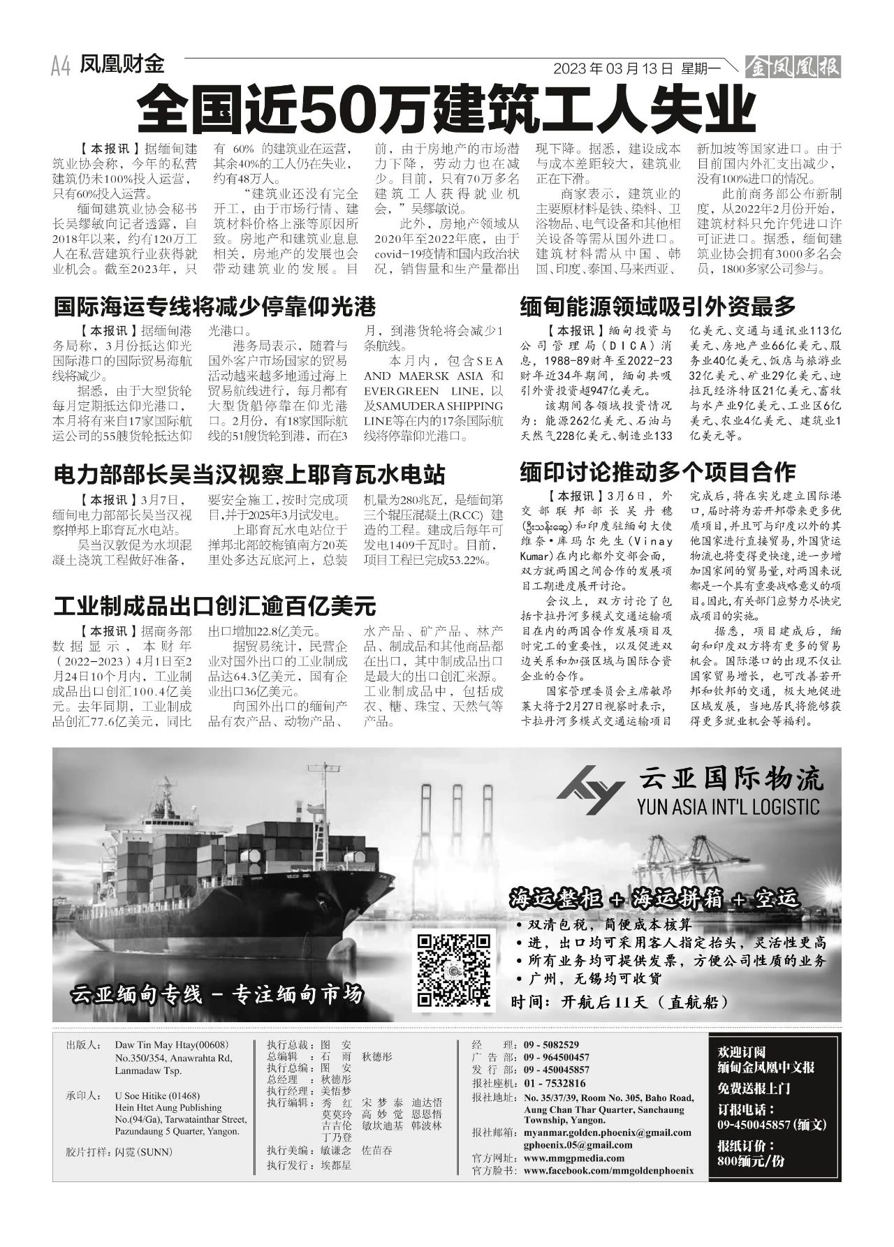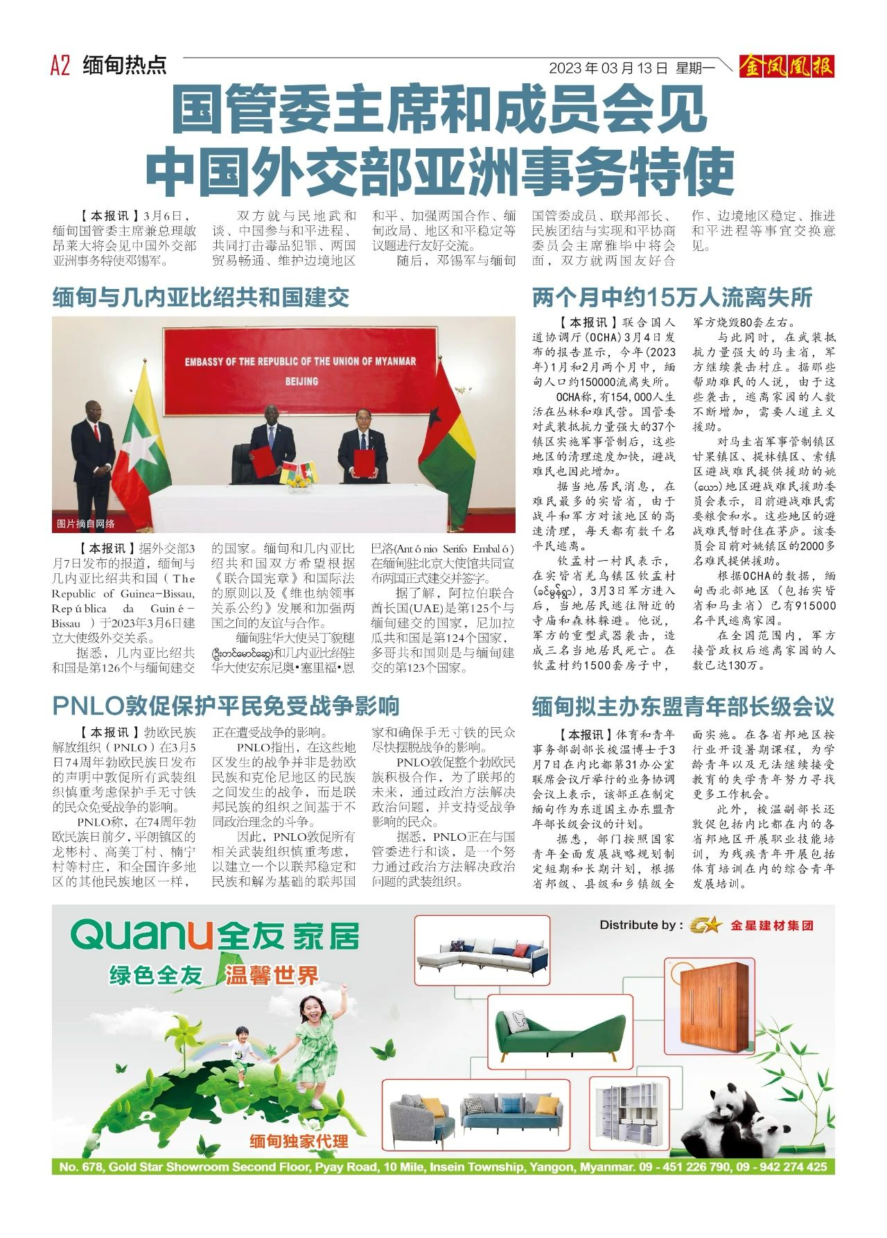 2023年3月13日出版的第610期《金凤凰报》电子报同时发送,为您带来关于缅甸最新最全的资讯。