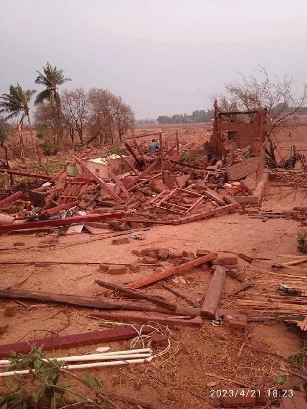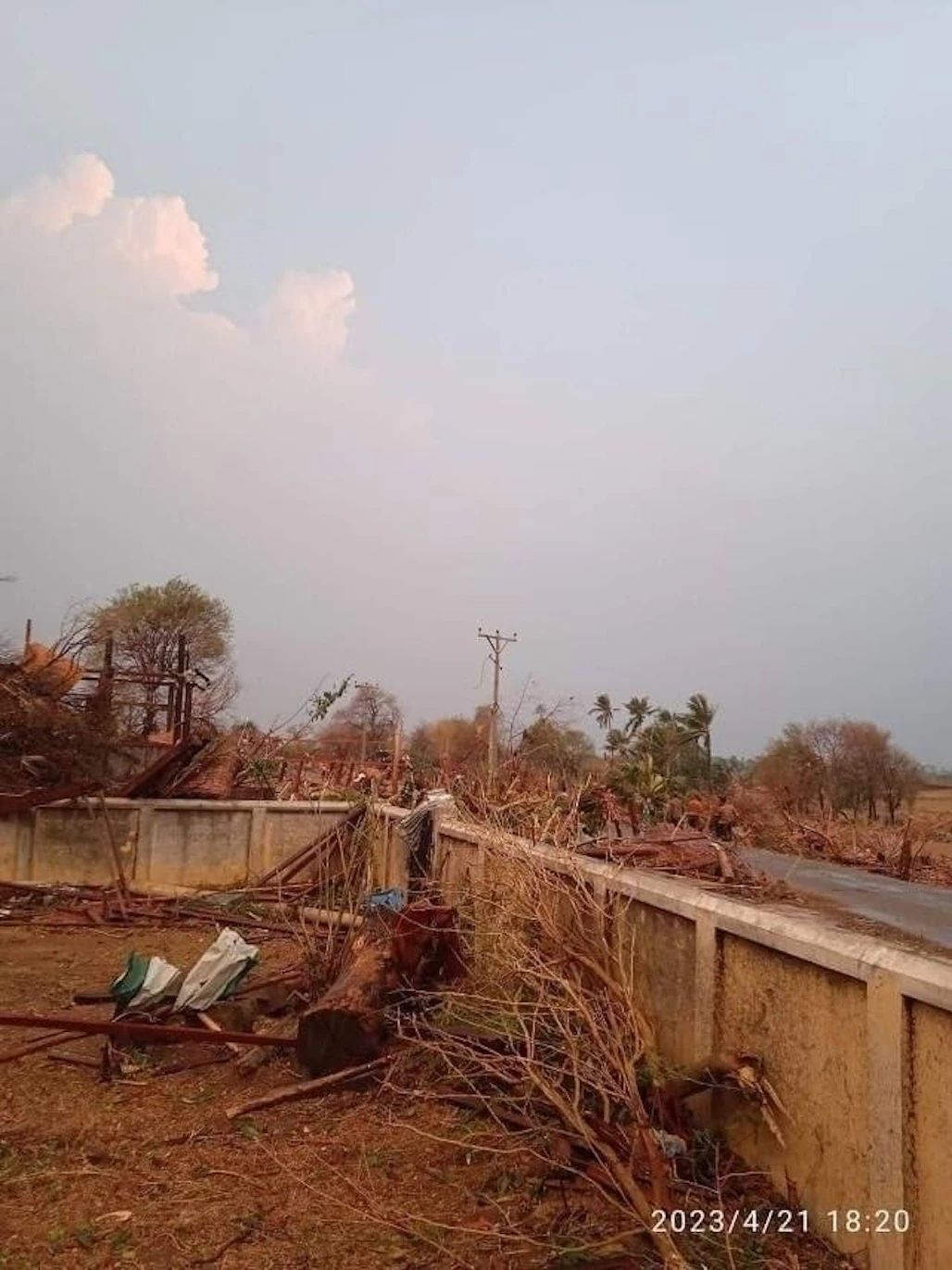 由于龙卷风刮起,德达乌村(တံတားဦးကျေးရွာ)里大约一半的房屋损毁。此外昂敏贡村(အောင်မြင်ကုန်းကျေးရွာ)里几乎所有的房屋都损毁,还发生了火灾。