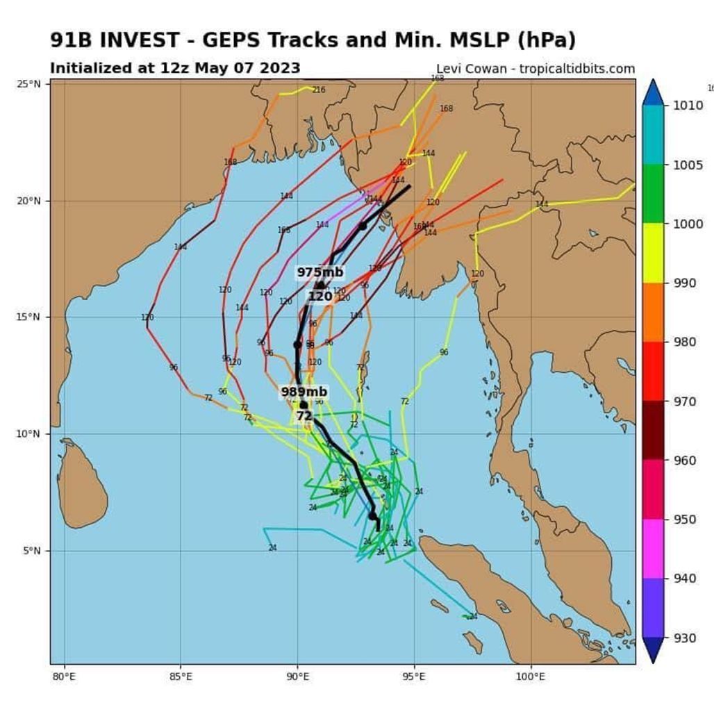 印度气象部门(IMD)警告说,在孟加拉湾东南部发展的热带风暴将在5月8日和5月12日给安达曼和尼科巴群岛,随之将带来强降雨。目前,风暴正向北移动,预计进入缅甸内陆的概率大于印度。但也有人计算出风暴路线有可能会发生变化。