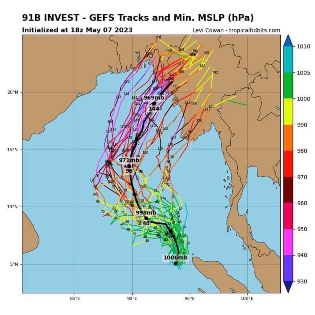 另据欧洲中期天气预报中心(ECMWF)和全球预报系统(GFS)模型以及和缅甸气象水文部门的预报,风暴于5月8日在孟加拉湾形成,途经低压区,后演变为超强气旋,预计于5月13日至14日登陆缅甸。