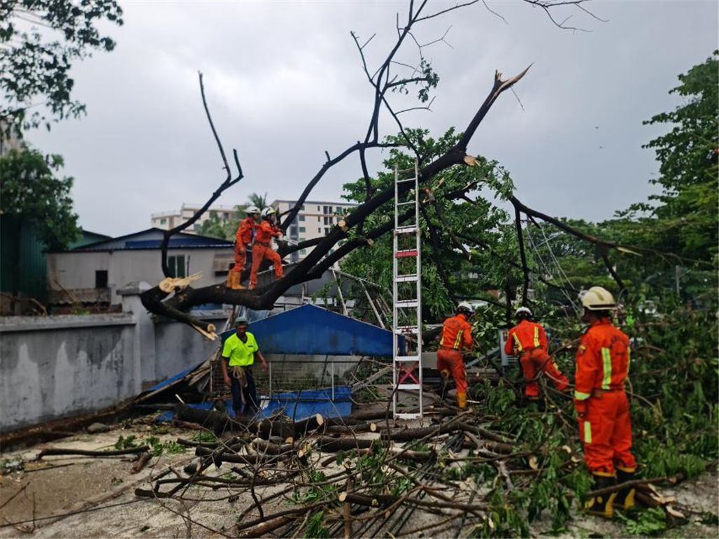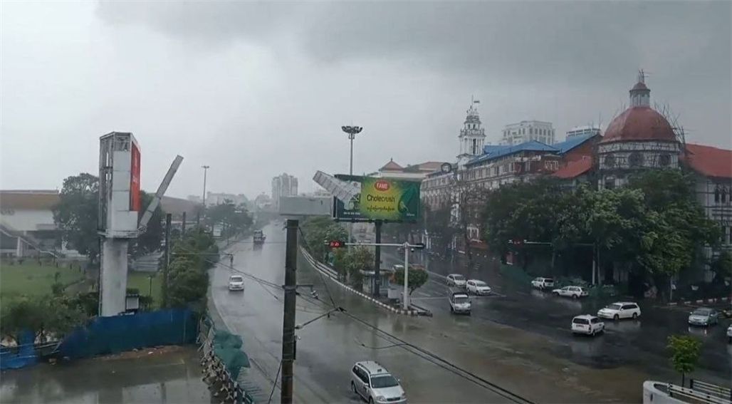 仰光等地迎来狂风暴雨