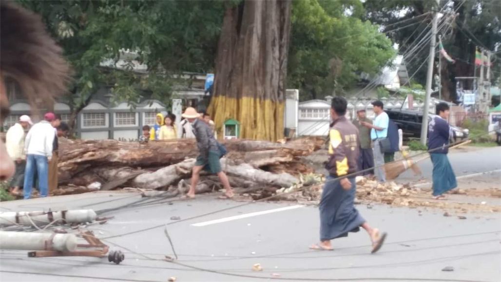 就在今天(5月14日)中午,伊洛瓦底省耶基镇区(ရေကြည်မြို့နယ်),因MOCHA风暴的大风,公路上一颗树倒塌,砸在了行驶中的一辆车司机身上,司机当场身亡。