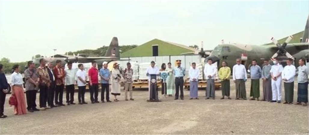 根据东盟灾难应急物流系统(Disaster Emergency Logistics System for ASEAN-DELSA)公布消息,来自马来西亚梳邦和泰国猜那仓库的救援物品将由泰国、新加坡和印度尼西亚武装部队通过飞机向缅甸运送,总共19班次援助物资。