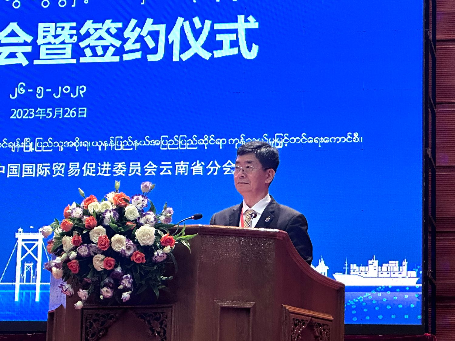 首先,经商参赞谭书富致辞表示,中缅是“胞波”友邻,两国经贸往来密切,合作不断深化。2022年5月1日,《区域全面经济伙伴关系协定》(RCEP)在中国和缅甸之间生效实施。近年来,缅甸政府不断完善法律法规,持续加大基础设施投入力度,多措并举改善营商环境,中缅经贸交流愈发活跃,企业合作意愿强烈,投资领域不断拓宽,给当地民众带来了实实在在的好处。